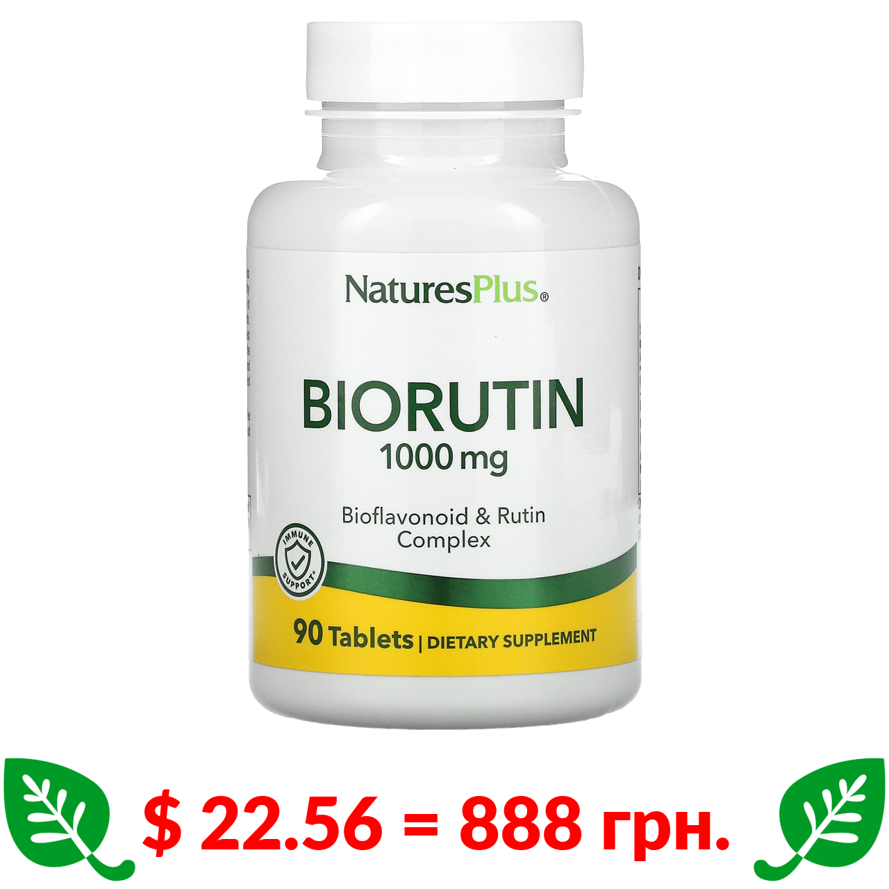 $ 22.56 = 888 грн. Nature’s Plus, біорутин, 1000 мг, 90 таблеток