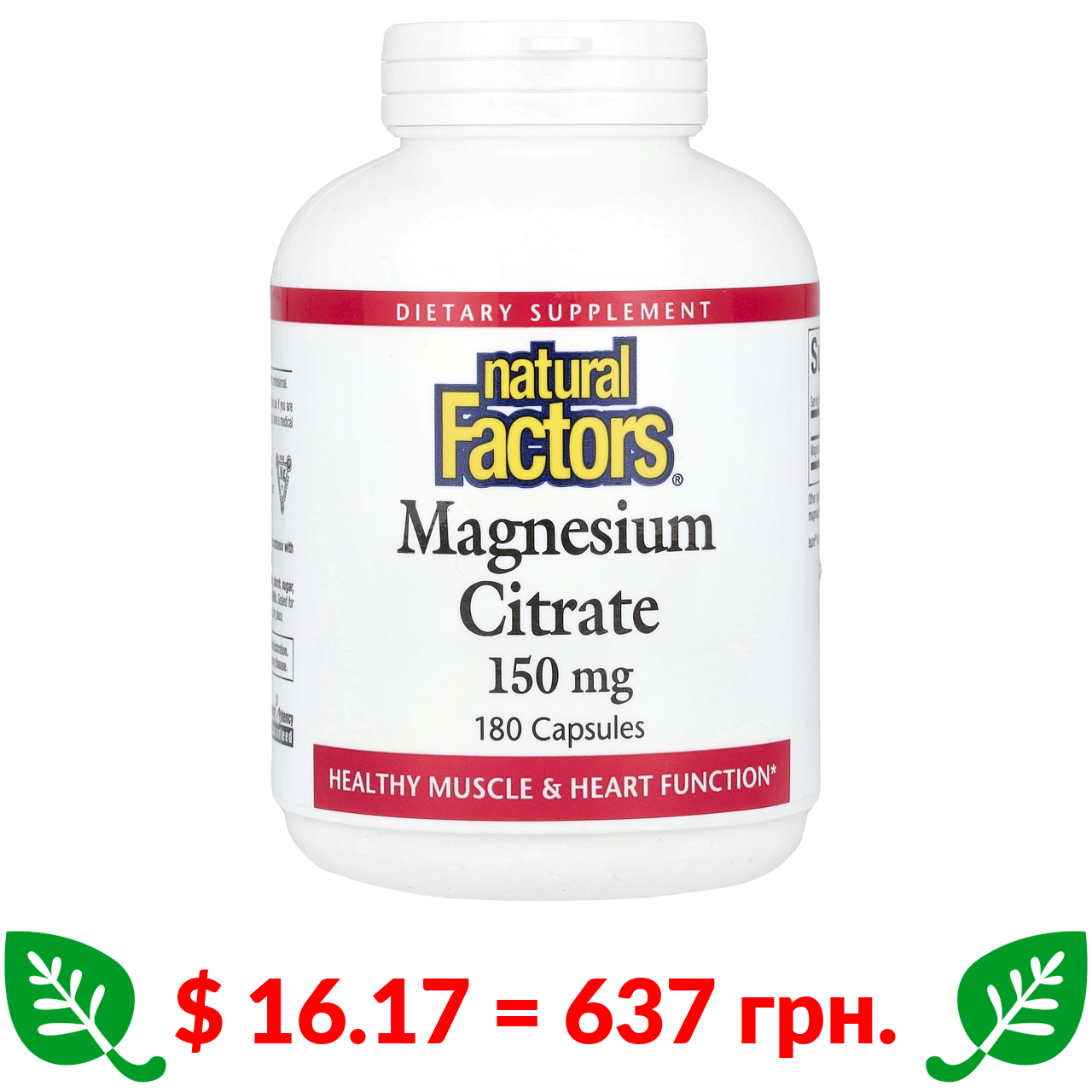 $ 16.17 = 637 грн. Natural Factors, цитрат магнію, 150 мг, 180 капсул
