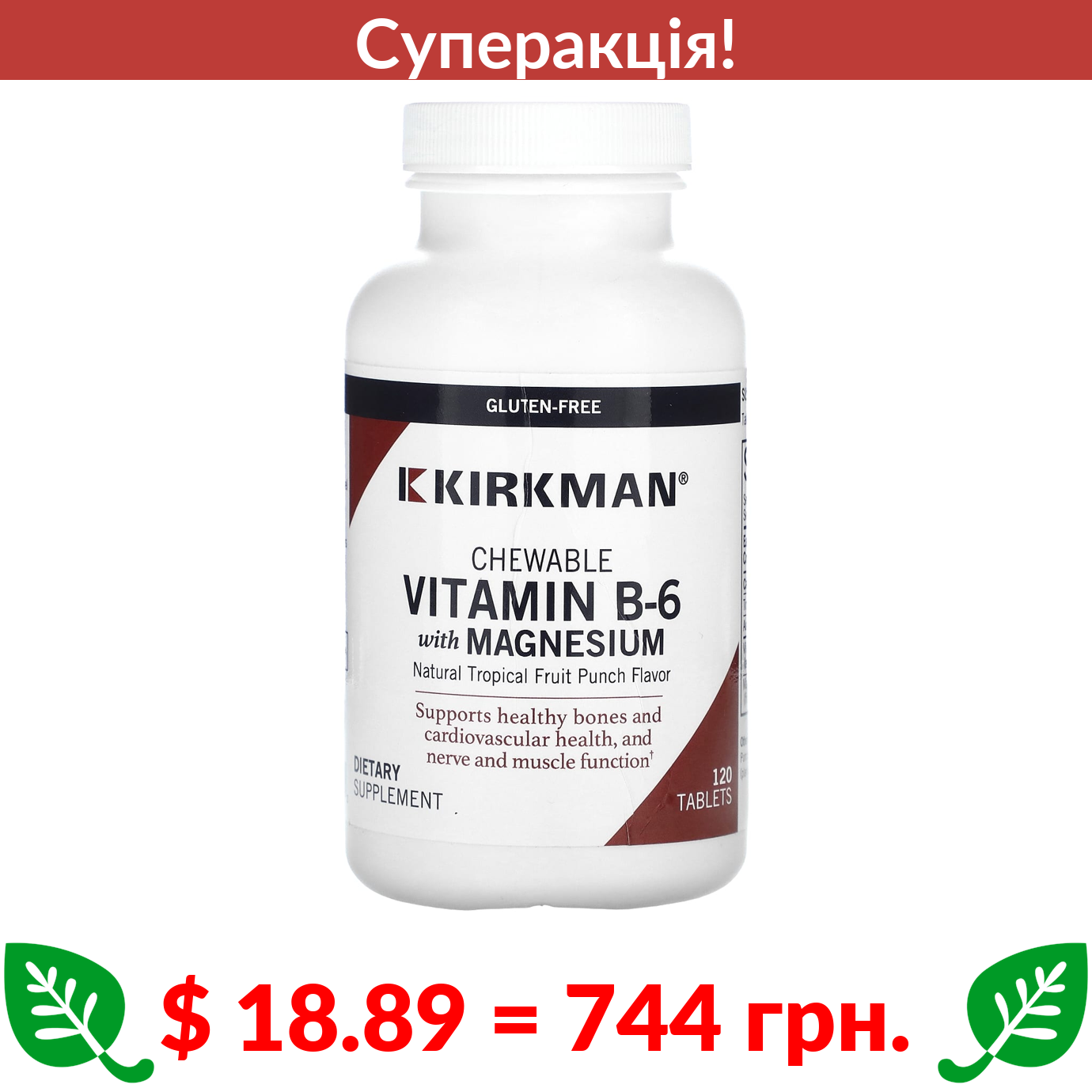 $ 18.89 = 744 грн. ???? cуперакція! ???? Kirkman Labs, Chewable Vitamin B-6 with Magnesium, Natural Tropical Fruit Punch, 120 Tablets