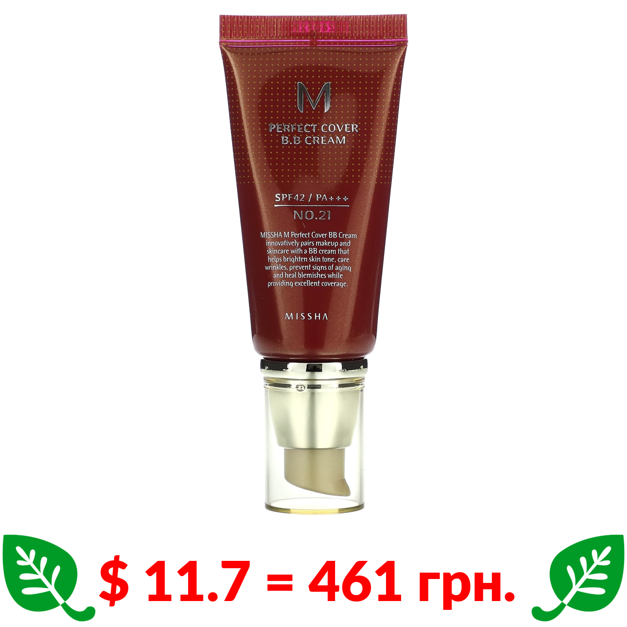 $ 11.7 = 461 грн. Missha, M Perfect Cover, BB-крем, SPF 42 PA+++, відтінок No 21 світло-бежевий, 50 мл (1,7 унції)