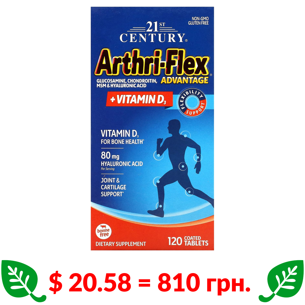 $ 20.58 = 810 грн. 21st Century, Arthri-Flex Advantage, добавка для підтримки суглобів з вітаміном D3, 120 вкритих оболонкою таблеток