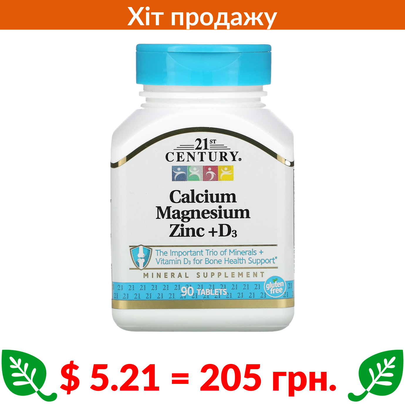 $ 5.21 = 205 грн. 21st Century, кальцій, магній, цинк і вітамін D3, 90 таблеток