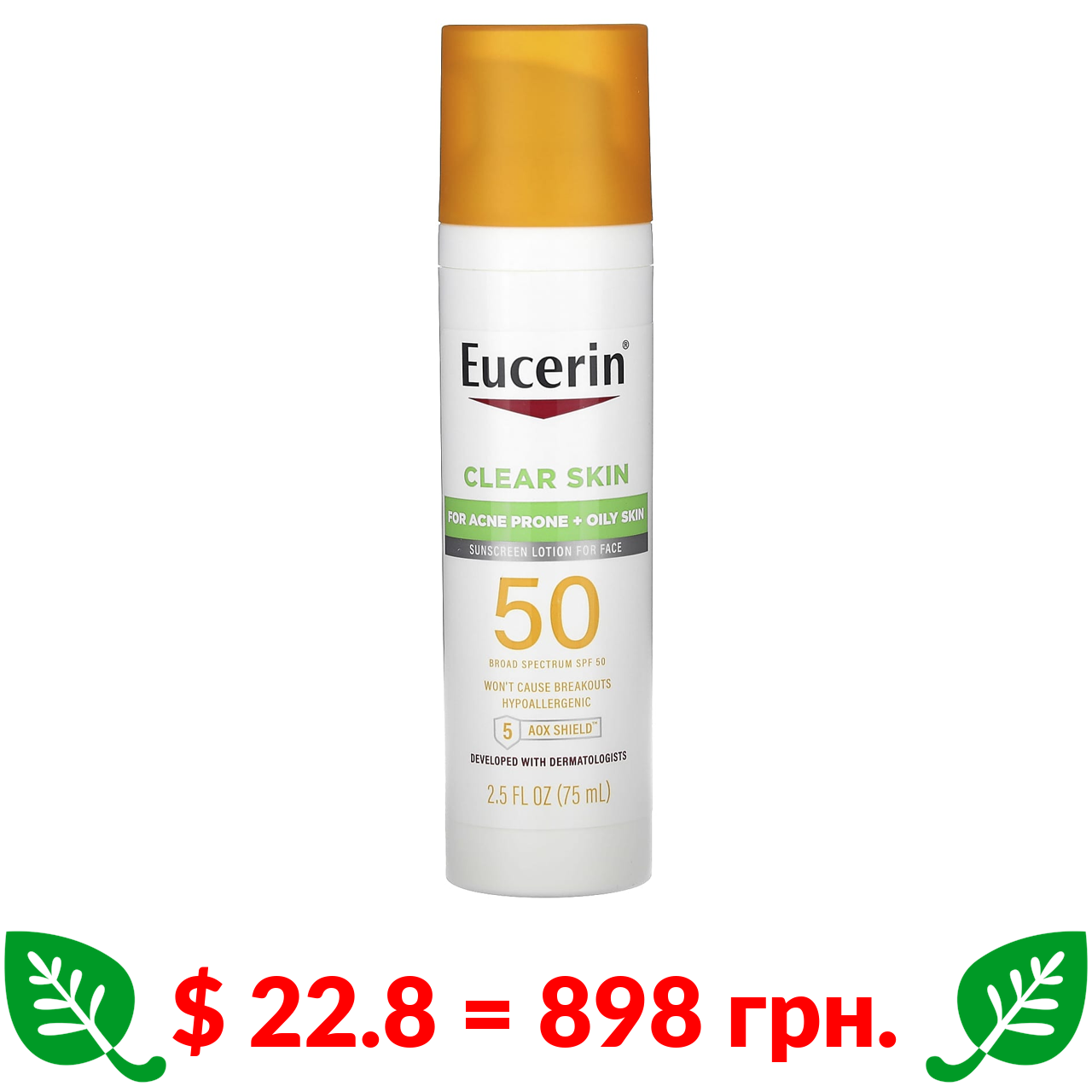 $ 22.8 = 898 грн. Eucerin, легкий сонцезахисний лосьйон для обличчя, контроль жирності, SPF 50, 75 мл (2,5 рідк. унції)