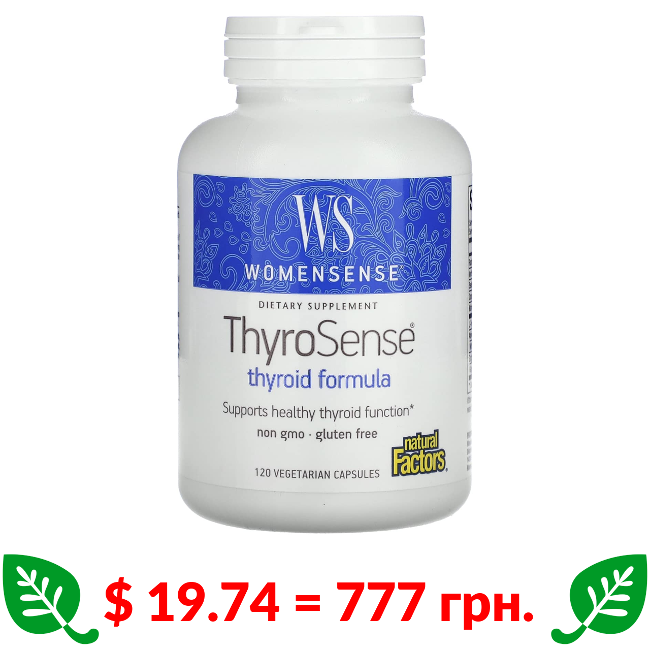 $ 19.74 = 777 грн. Natural Factors, WomenSense, ThyroSense,засіб для щитовидної залози, 120 вегетаріанських капсул