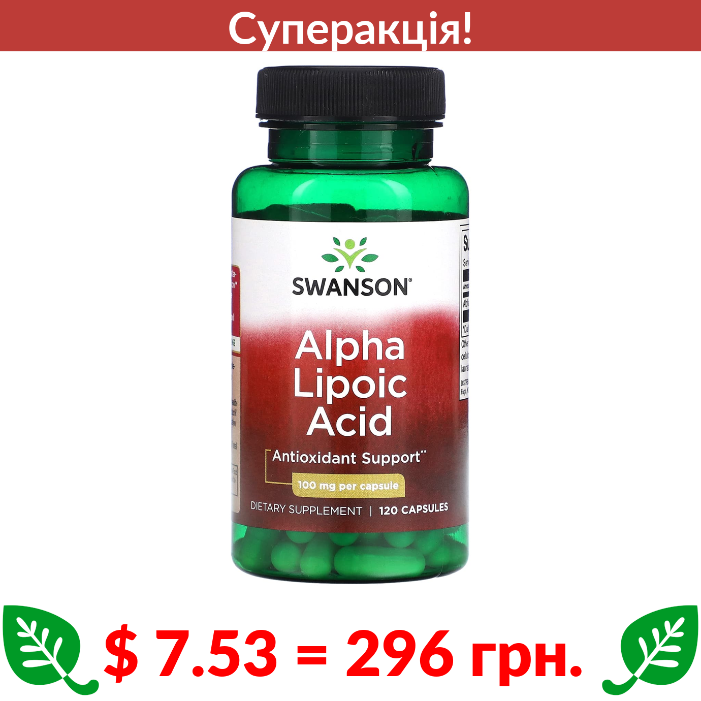 $ 7.53 = 296 грн. ???? cуперакція! ???? Swanson, альфа-ліпоєва кислота, 100 мг, 120 капсул