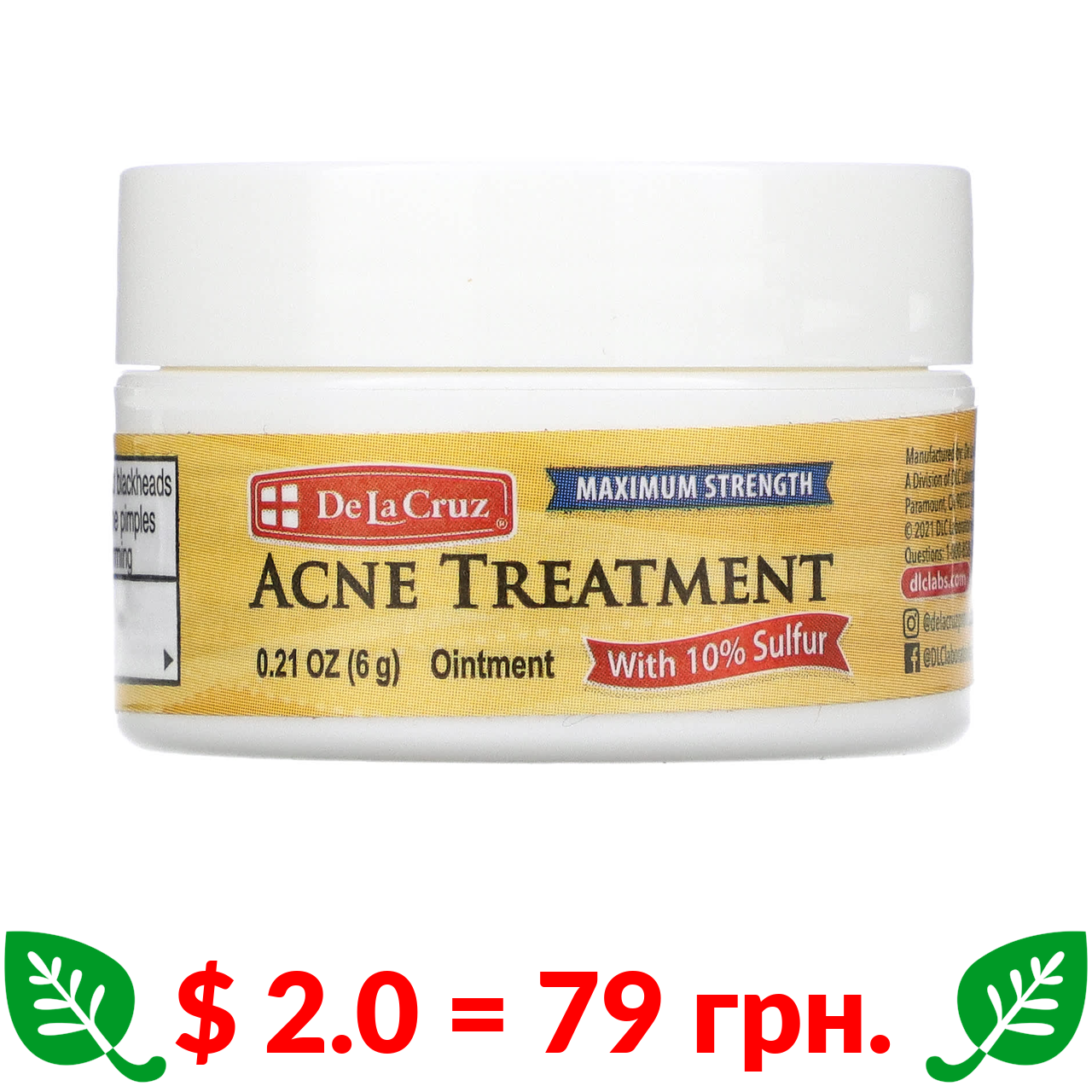$ 2.0 = 79 грн. De La Cruz, сірчана мазь, засіб для лікування акне, максимальна ефективність, 6 г (0,21 унції)