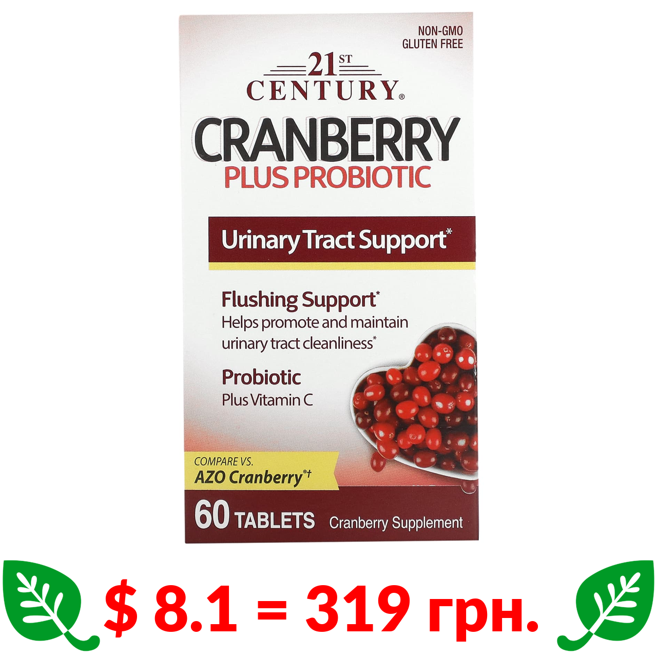 $ 8.1 = 319 грн. 21st Century, журавлина з пробіотиком, 60 таблеток
