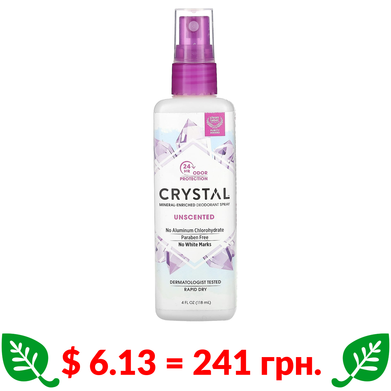$ 6.13 = 241 грн. Crystal Body Deodorant, мініральний спрей-дезодорант, без запаху, 118 мл (4 рідк. унції)