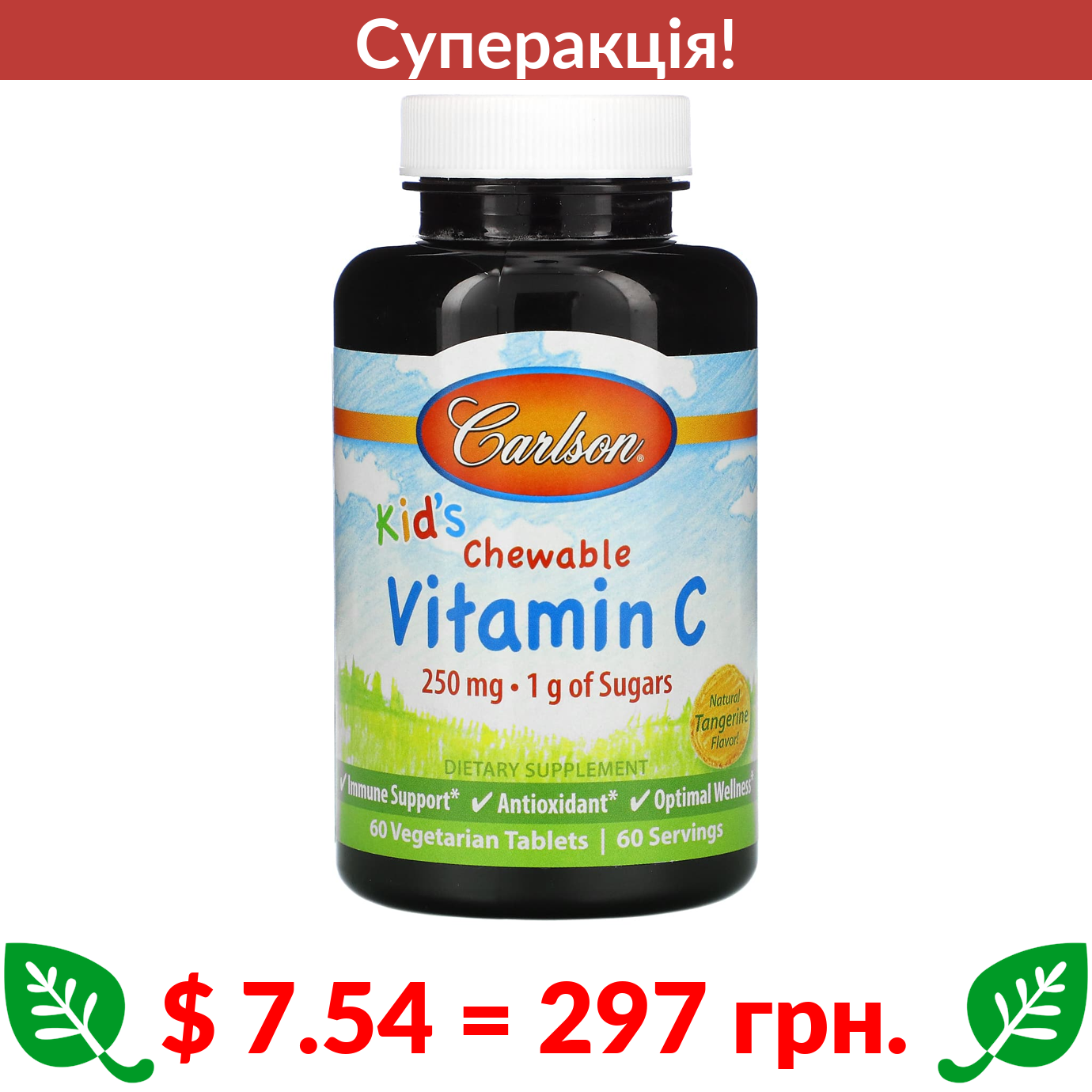 $ 7.54 = 297 грн. ???? cуперакція! ???? Carlson, жувальний вітамін C, натуральний мандарин, 250 мг, 60 вегетаріанських таблеток