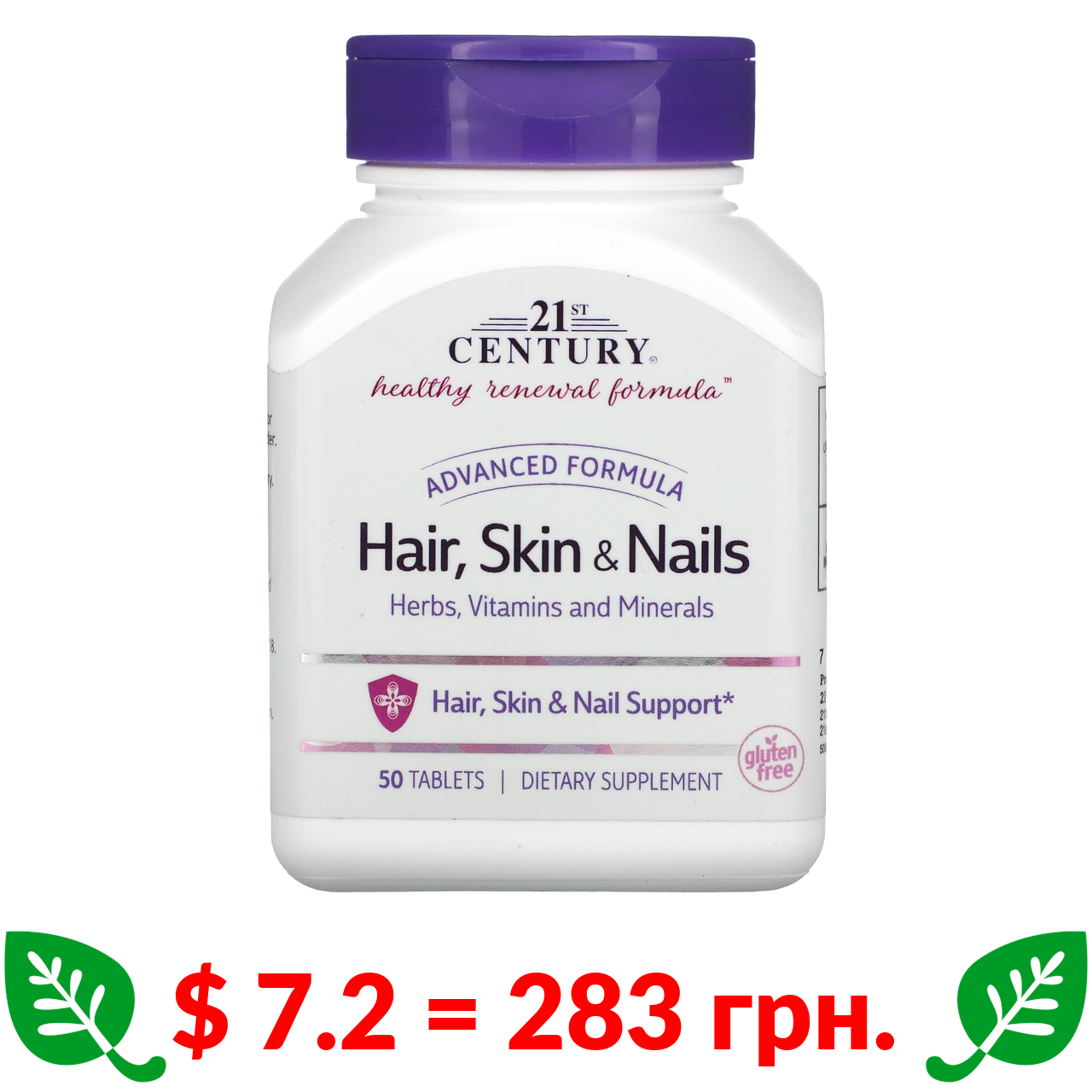 $ 7.2 = 283 грн. 21st Century, комплекс для волосся, шкіри та нігтів, поліпшена формула, 50 таблеток