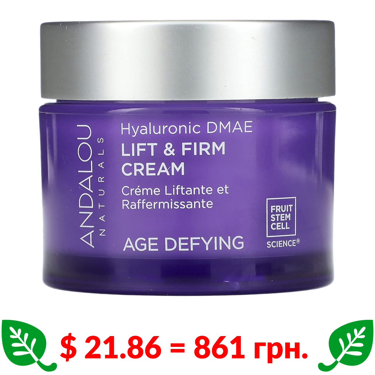 $ 21.86 = 861 грн. ????️ у кошику ????️ Andalou Naturals, крем для підтяжки та пружності шкіри, ДМАЕ з гіалуроновою кислотою, антивіковий ефект, 50 г (1,7 унції)