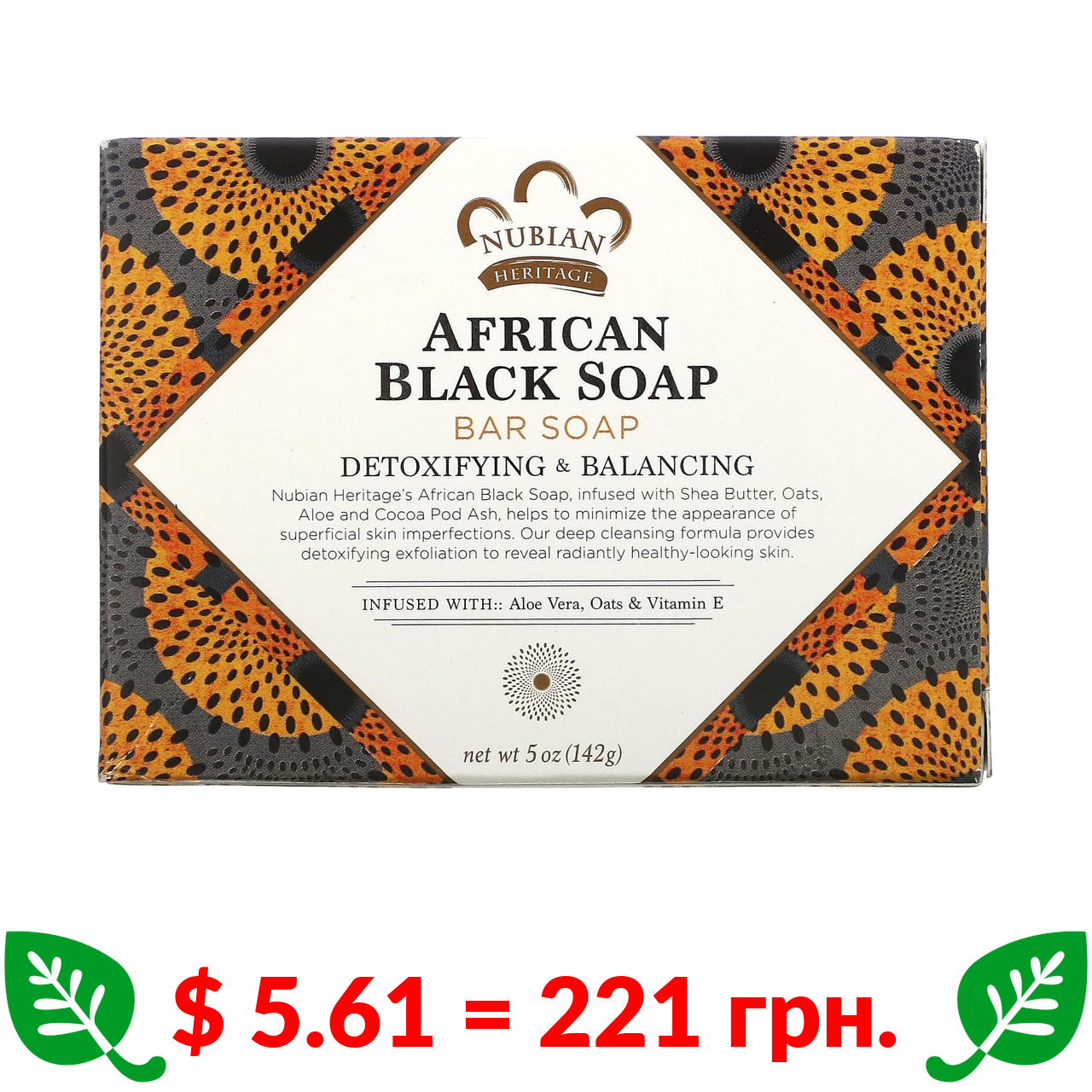 $ 5.61 = 221 грн. Nubian Heritage, африканське чорне кускове мило, 142 г (5 унцій)
