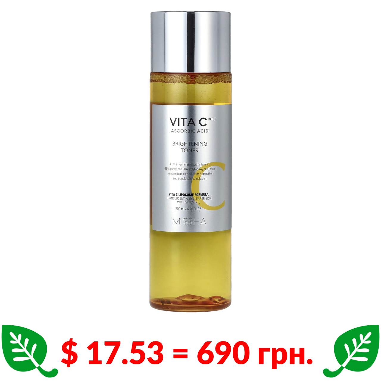 $ 17.53 = 690 грн. Missha, вітамін С плюс аскорбінова кислота, тонік для покращення кольору обличчя, 200 мл (6,76 рідк. унції)