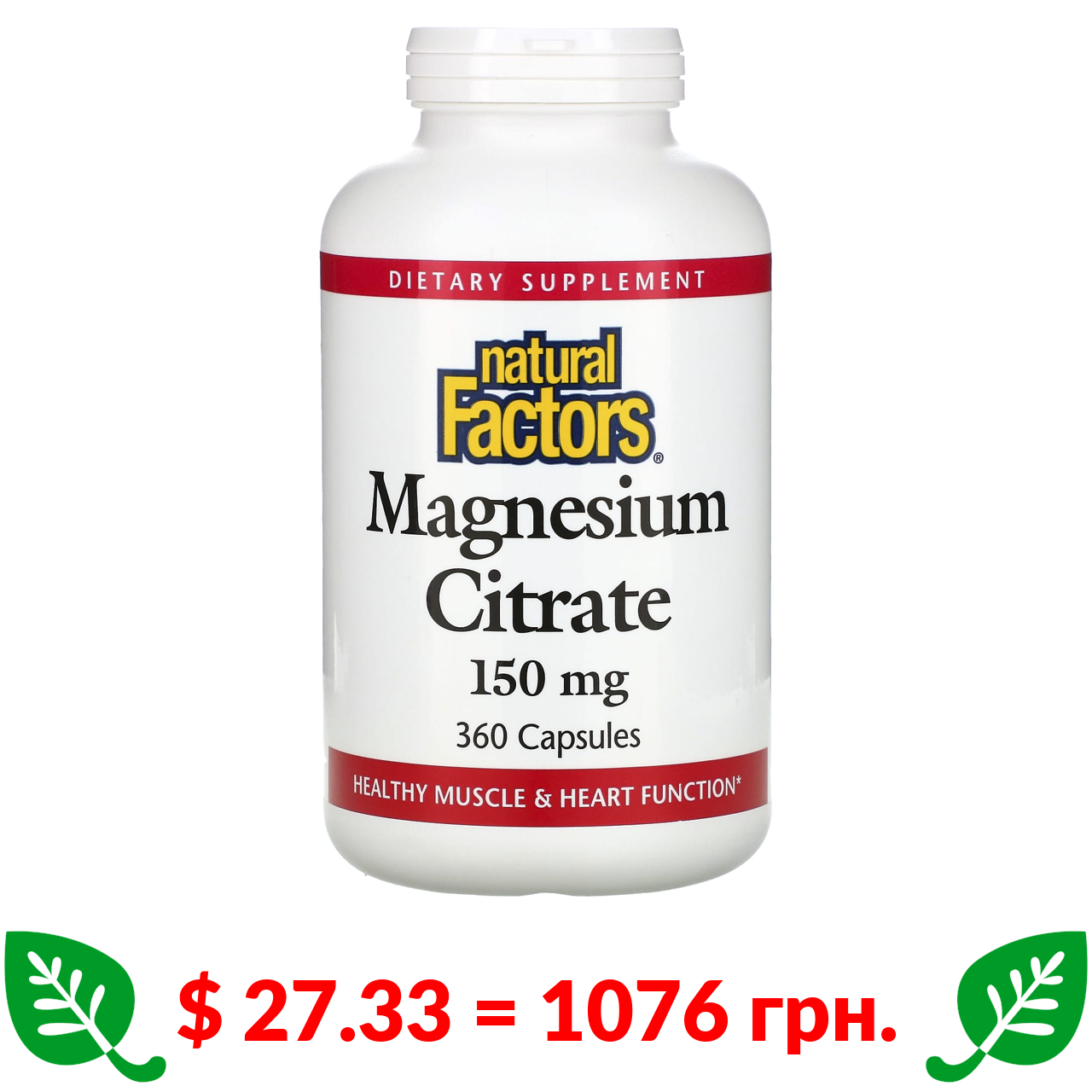 $ 27.33 = 1076 грн. Natural Factors, цитрат магнію, 150 мг, 360 капсул