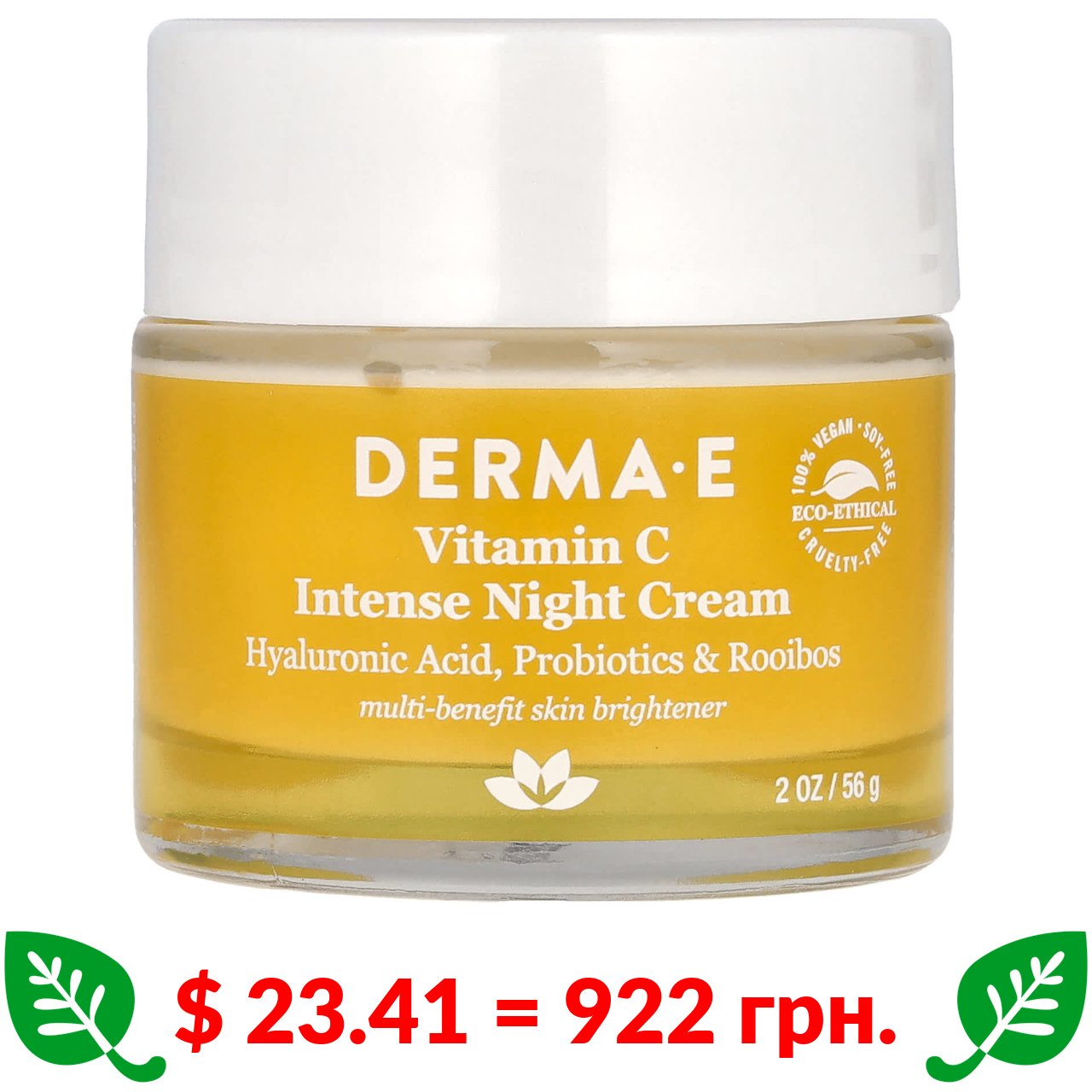$ 23.41 = 922 грн. DERMA E, інтенсивний нічний крем з вітаміном C, 56 г (2 унції)