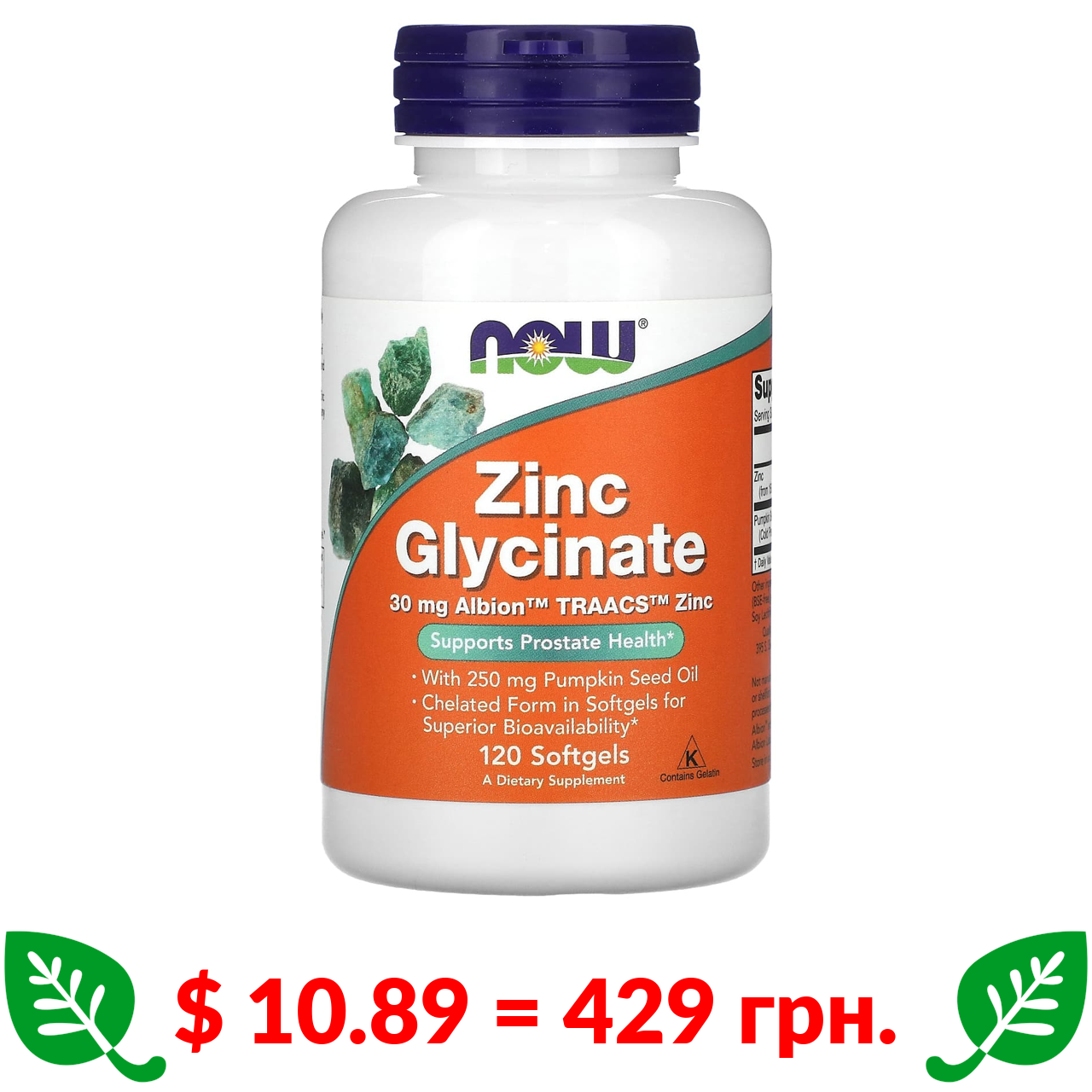 $ 10.89 = 429 грн. Now Foods, гліцинат цинку, 120 капсул