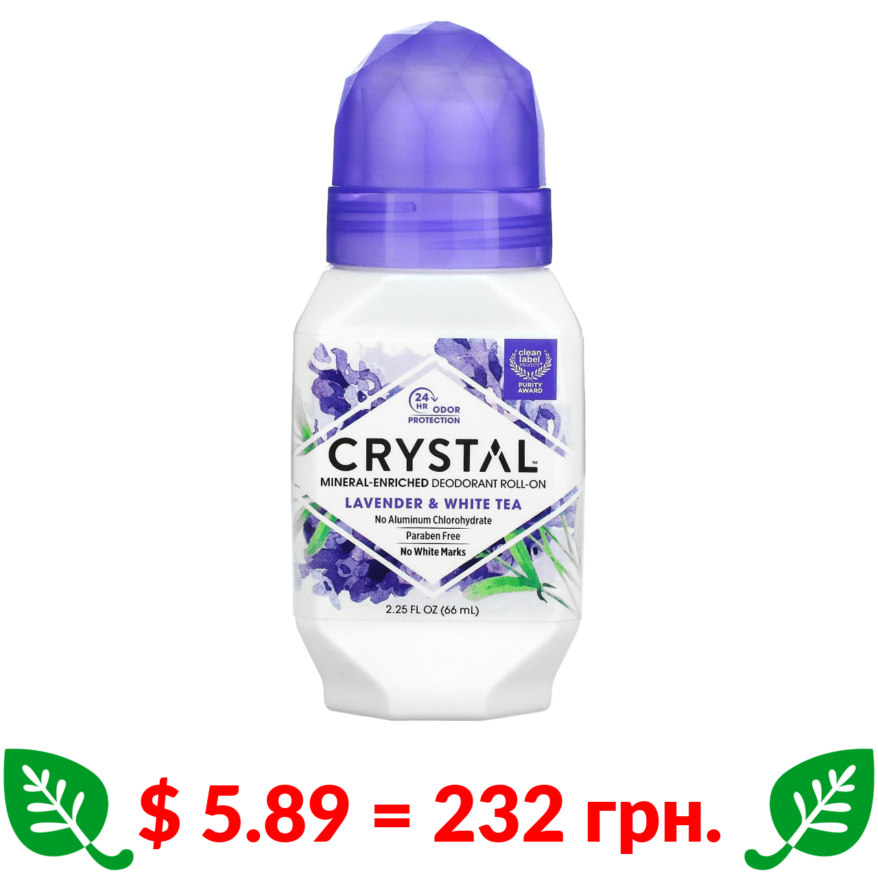 $ 5.89 = 232 грн. Crystal Body Deodorant, натуральний кульковий дезодорант, лаванда та білий чай, 66 мл (2,25 унції)