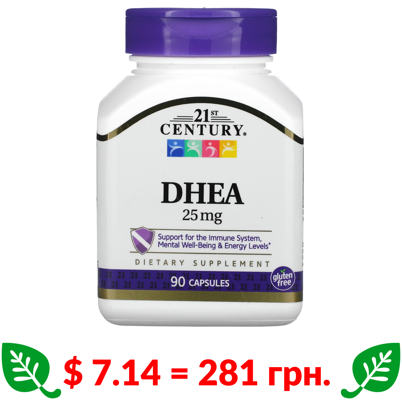 $ 7.14 = 281 грн. 21st Century, ДГЕА, 25 мг, 90 капсул