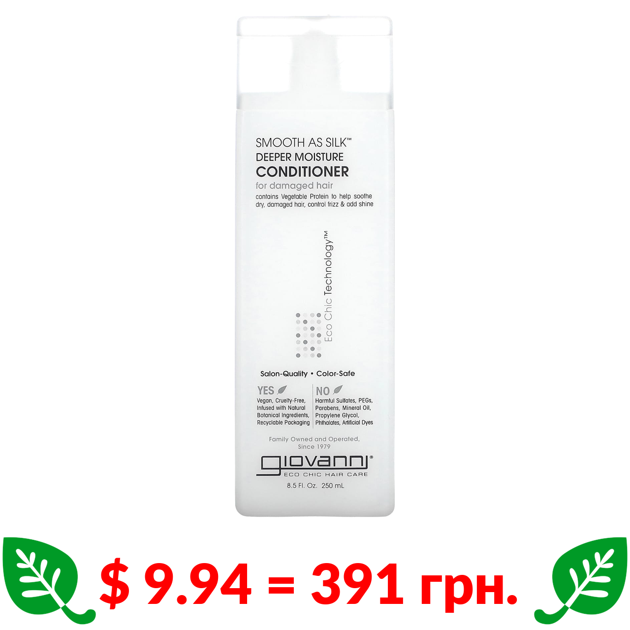 $ 9.94 = 391 грн. Giovanni, Smooth As Silk, кондиціонер для глибокого зволоження волосся, для пошкодженого волосся, 250 мл (8,5 рідк. унцій)