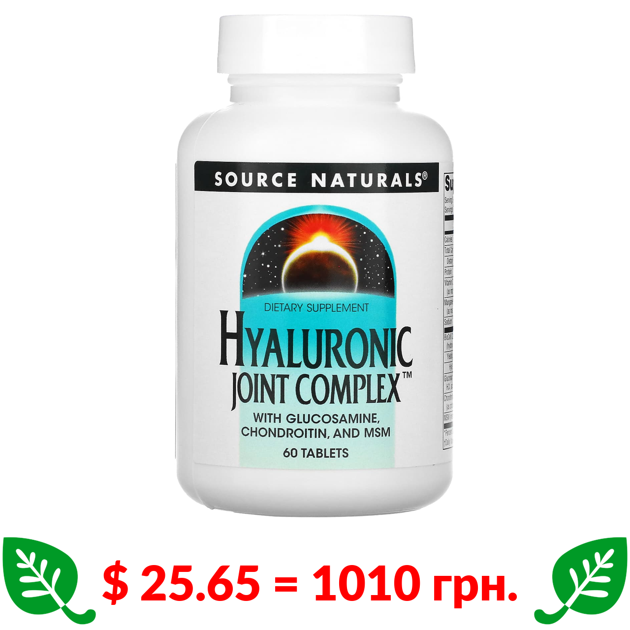 $ 25.65 = 1010 грн. Source Naturals, Hyaluronic Joint Complex, 60 Tablets