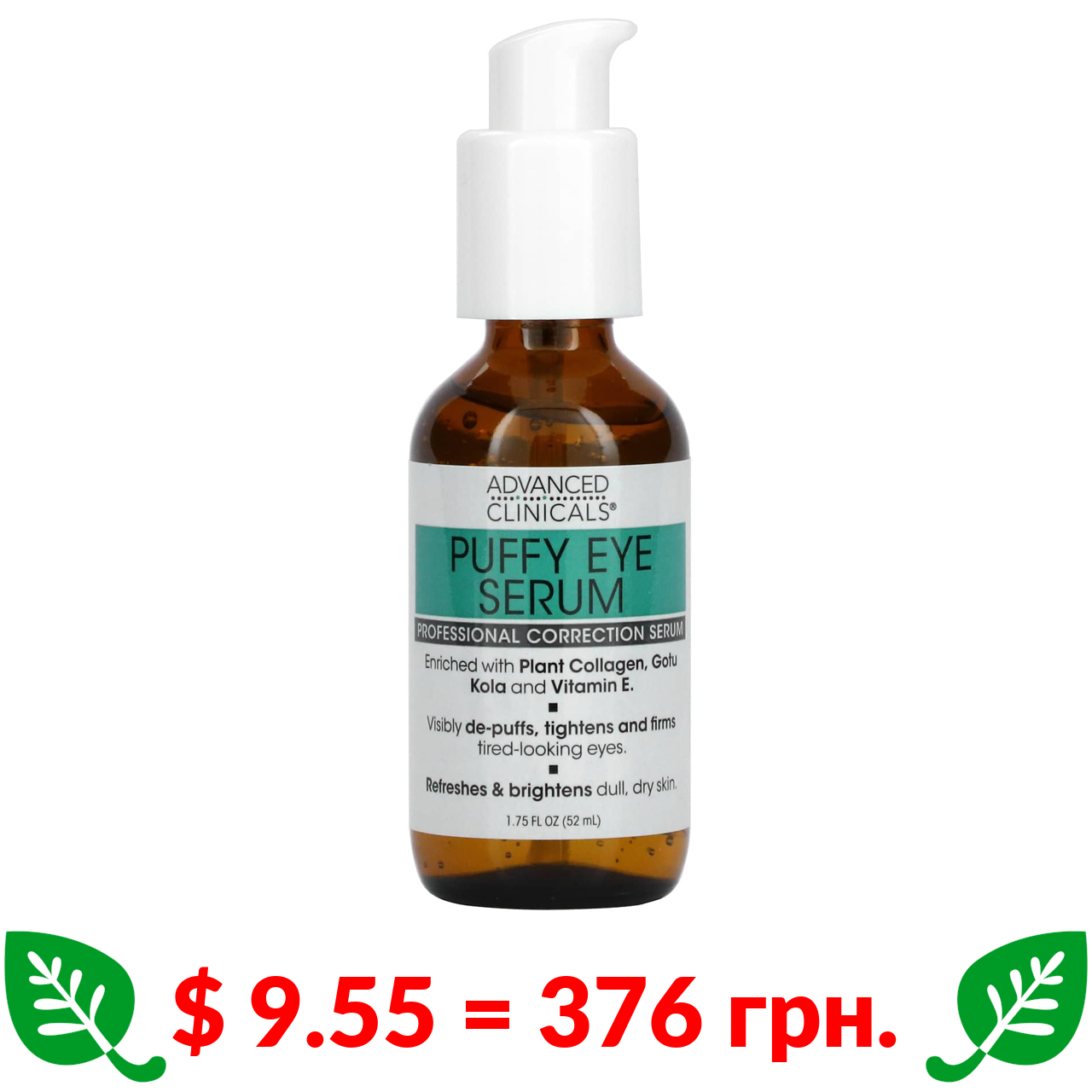 $ 9.55 = 376 грн. Advanced Clinicals, сироватка для набряклих очей, професійна сироватка для корекції, 52 мл (1,75 рідк. унції)