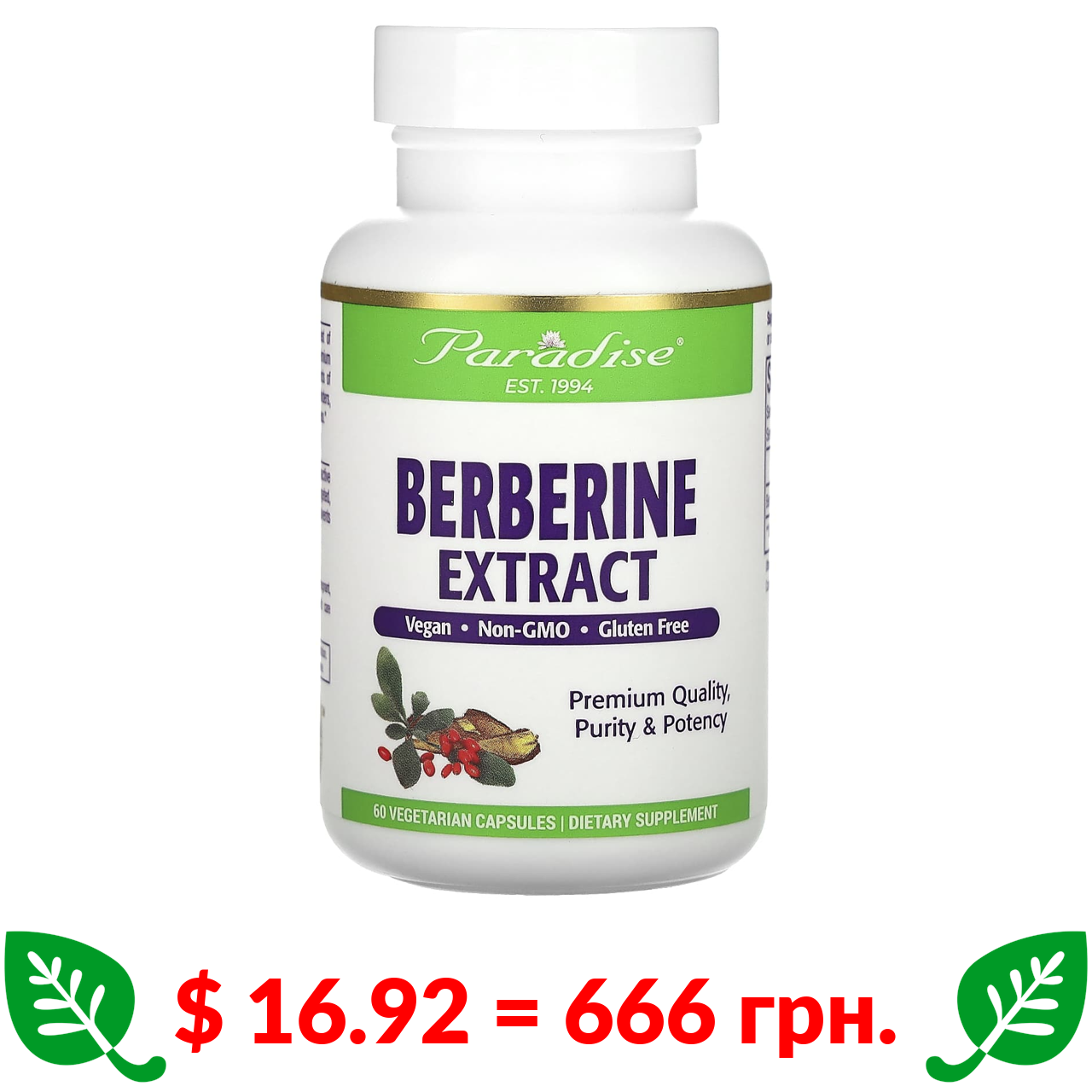$ 16.92 = 666 грн. Paradise Herbs, екстракт берберину, 60 вегетаріанських капсул