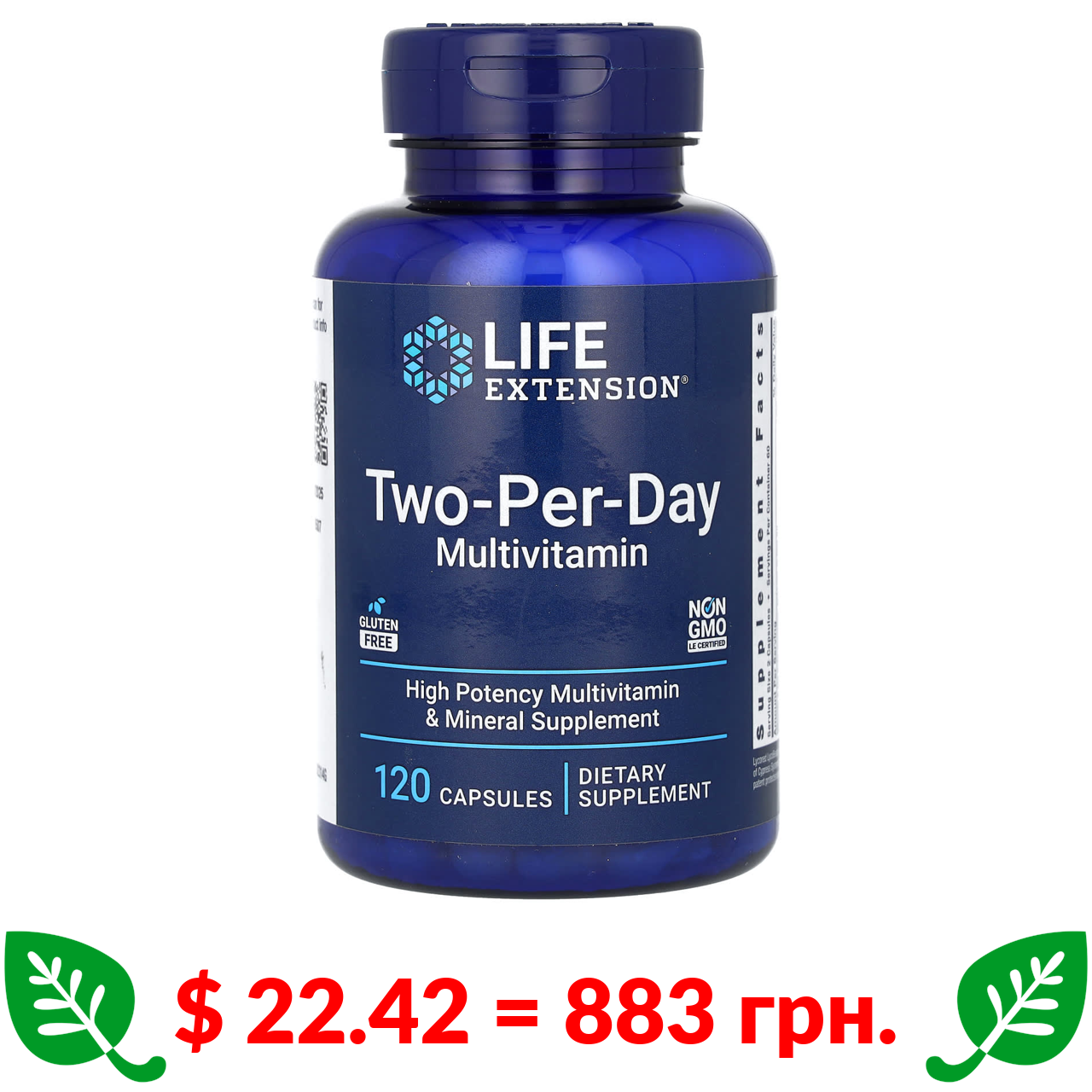 $ 22.42 = 883 грн. Life Extension, мультивітаміни для прийому двічі на день, 120 капсул