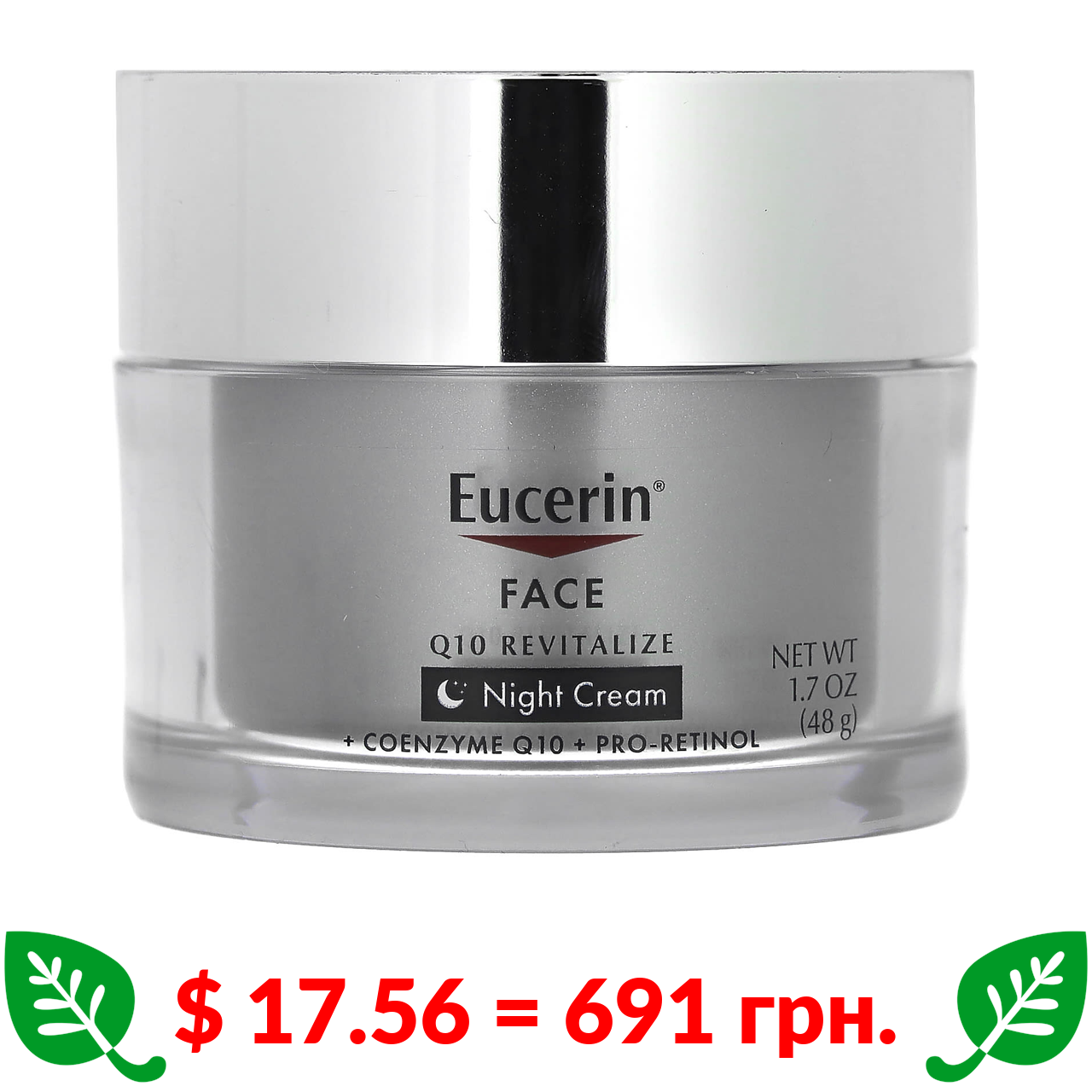 $ 17.56 = 691 грн. Eucerin, нічний крем для обличчя, Q10 Revitalize, без ароматизаторів, 48 г (1,7 рідк. унції)