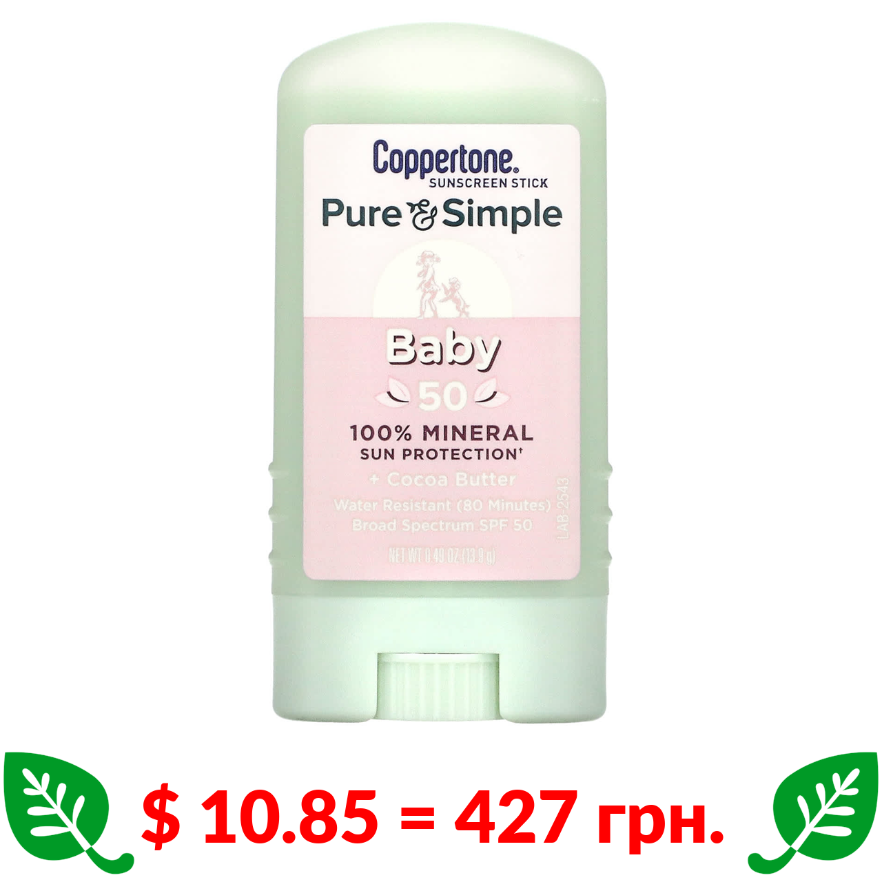 $ 10.85 = 427 грн. Coppertone, Baby, Sunscreen Stick, SPF 50, 0.49 oz (13.9 g)