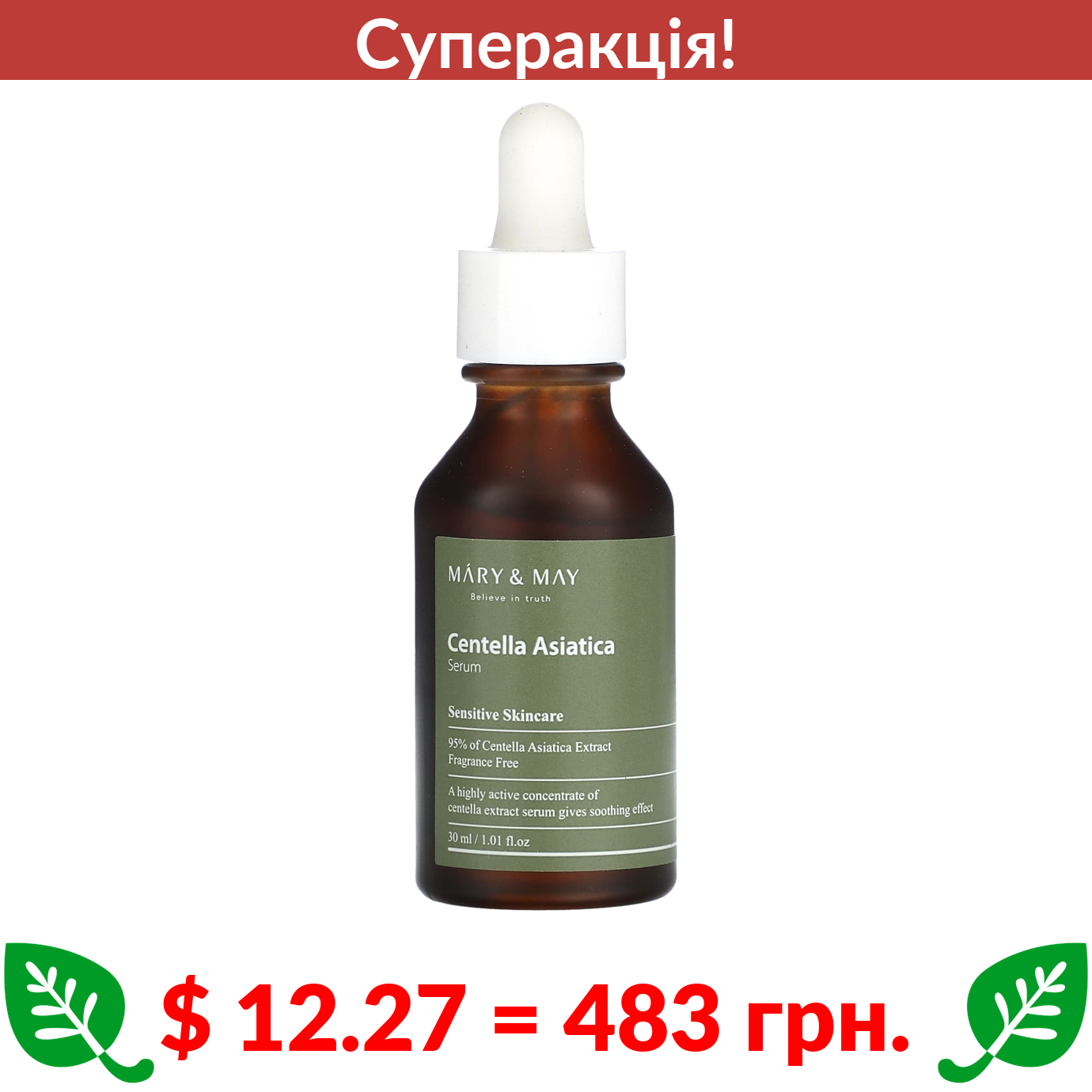 $ 12.27 = 483 грн. ???? cуперакція! ???? Mary & May, Centella Asiatica Serum, Fragrance Free, 1.01 fl oz (30 ml)