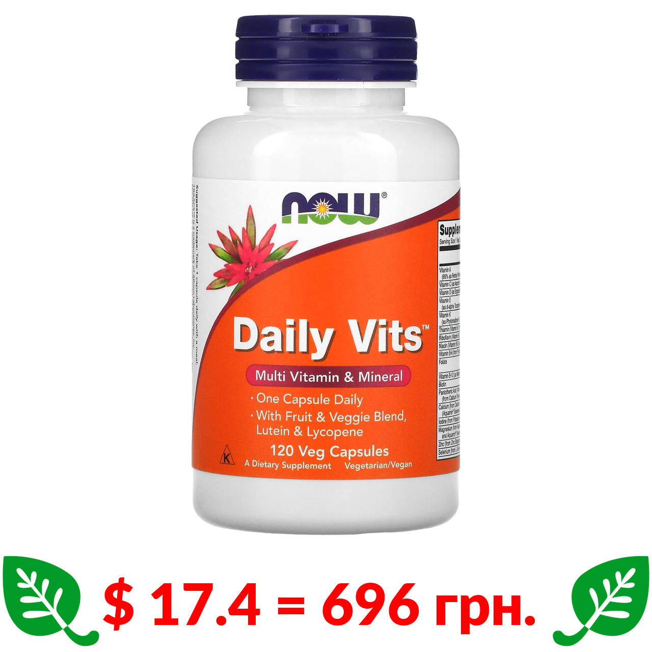 $ 17.4 = 696 грн. Now Foods, Daily Vits, мультивітаміни і мікроелементи, 120 вегетаріанських капсул