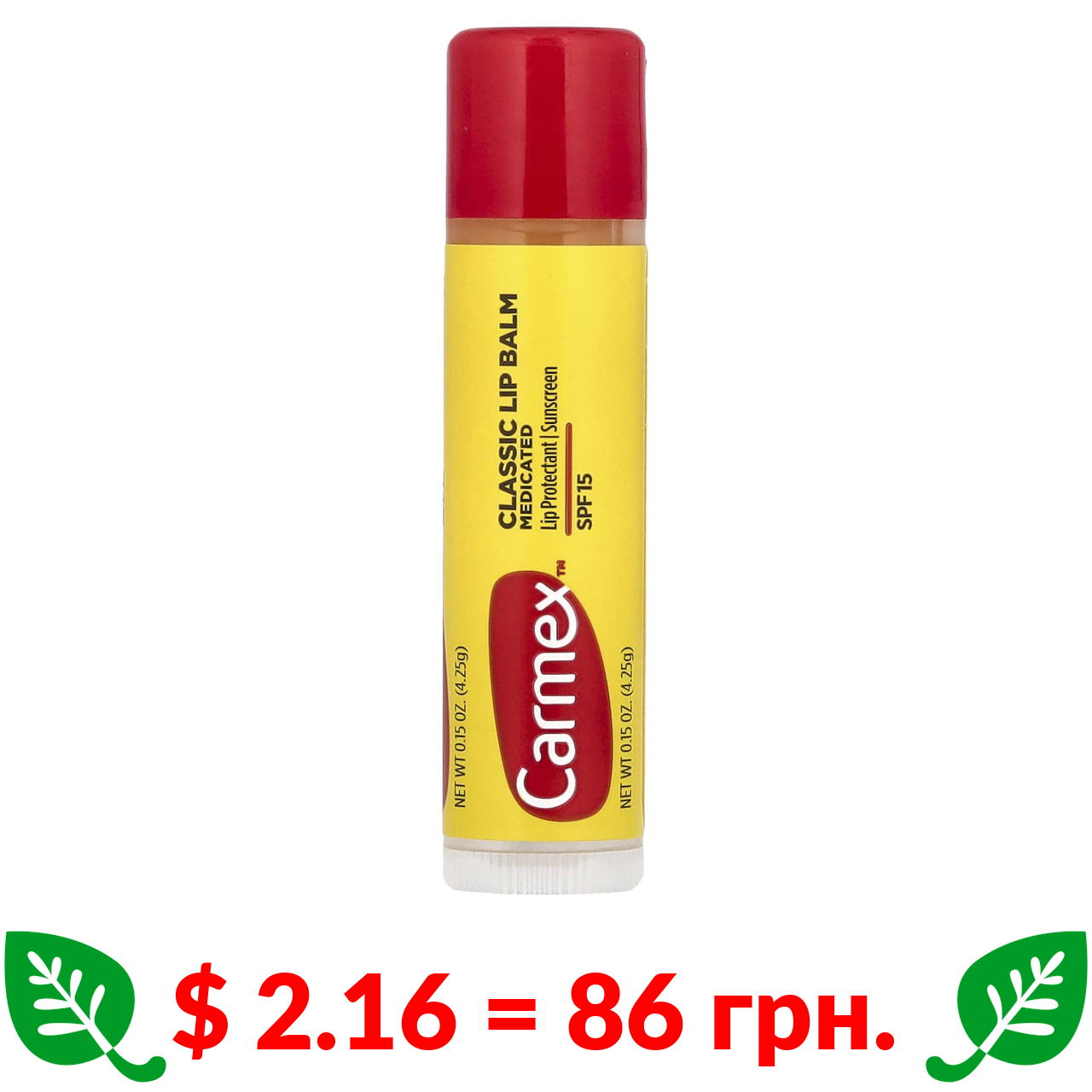 $ 2.16 = 86 грн. Carmex, класичний бальзам для губ, лікувальний, SPF 15, 4,25 г (15 унції)