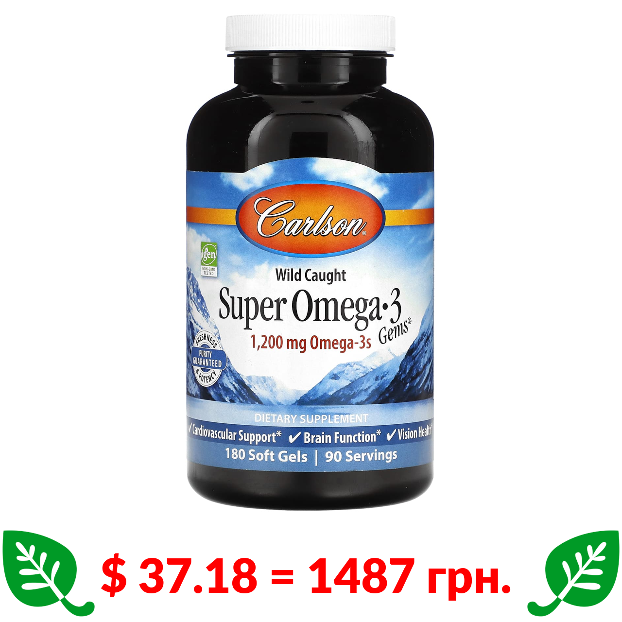 $ 37.18 = 1487 грн. Carlson, Super Omega-3 Gems, омега-3 кислоти з риби дикого вилову, 1200 мг, 180 капсул (600 мг у капсулі)