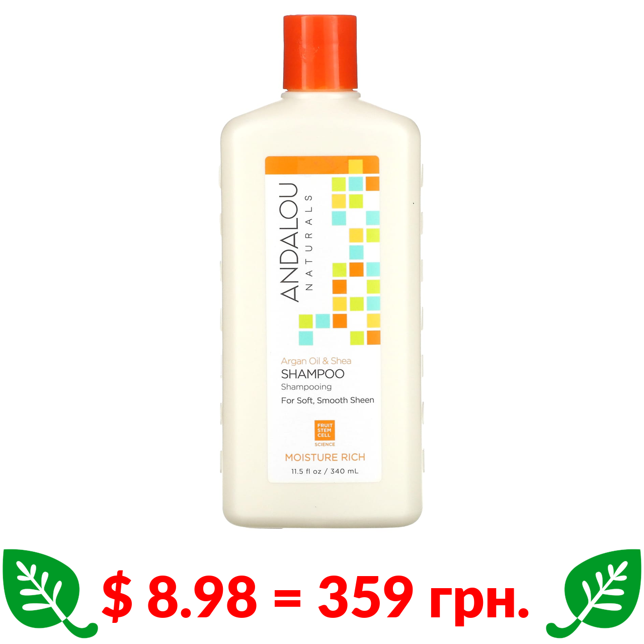 $ 8.98 = 359 грн. ????️ у кошику ????️ Andalou Naturals, зволожувальний шампунь для м’якого, гладкого блиску, арганова оліїя та ши, 340 мл (11,5 рідк. унції)