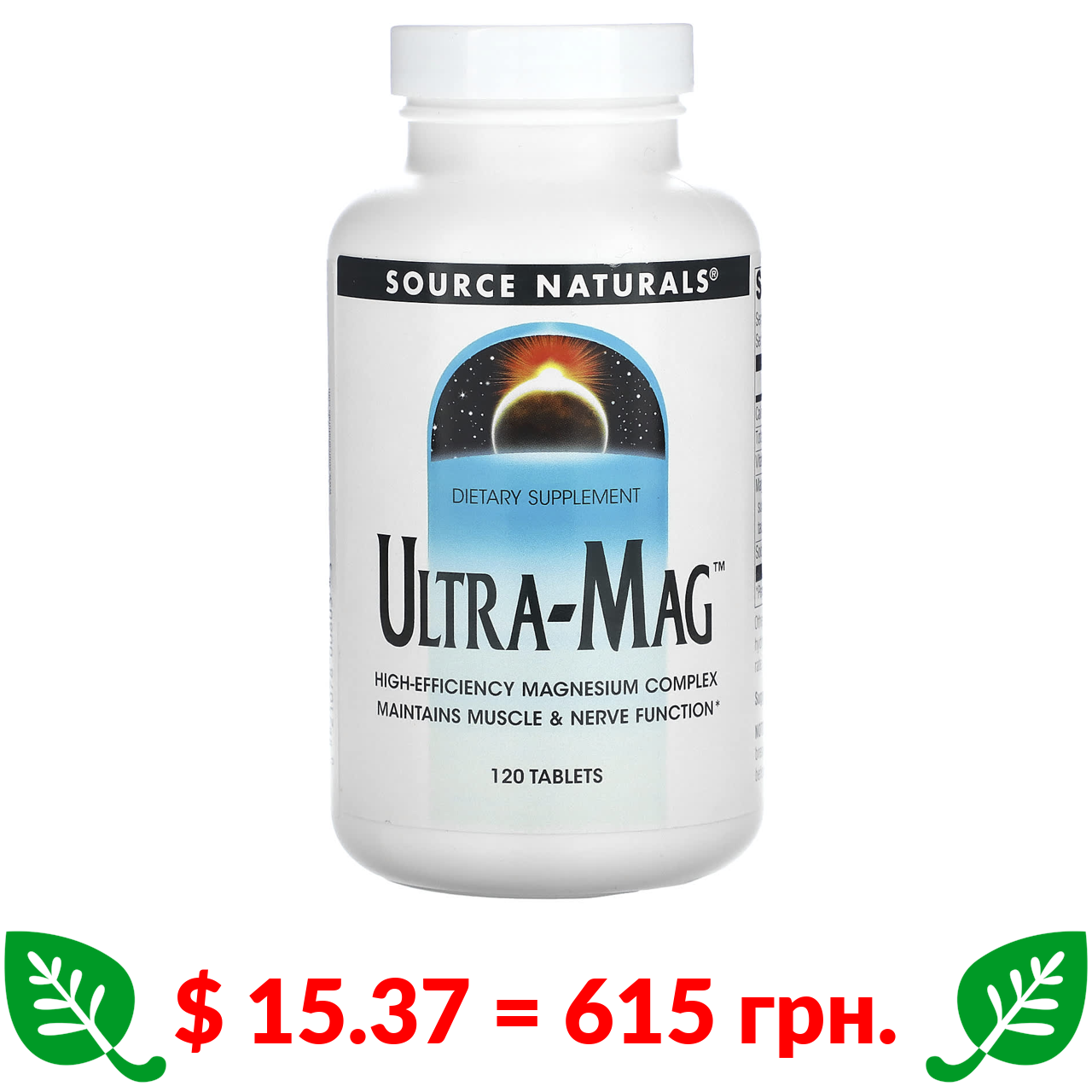 $ 15.37 = 615 грн. Source Naturals, Ultra-Mag, комплекс із магнієм, 120 таблеток