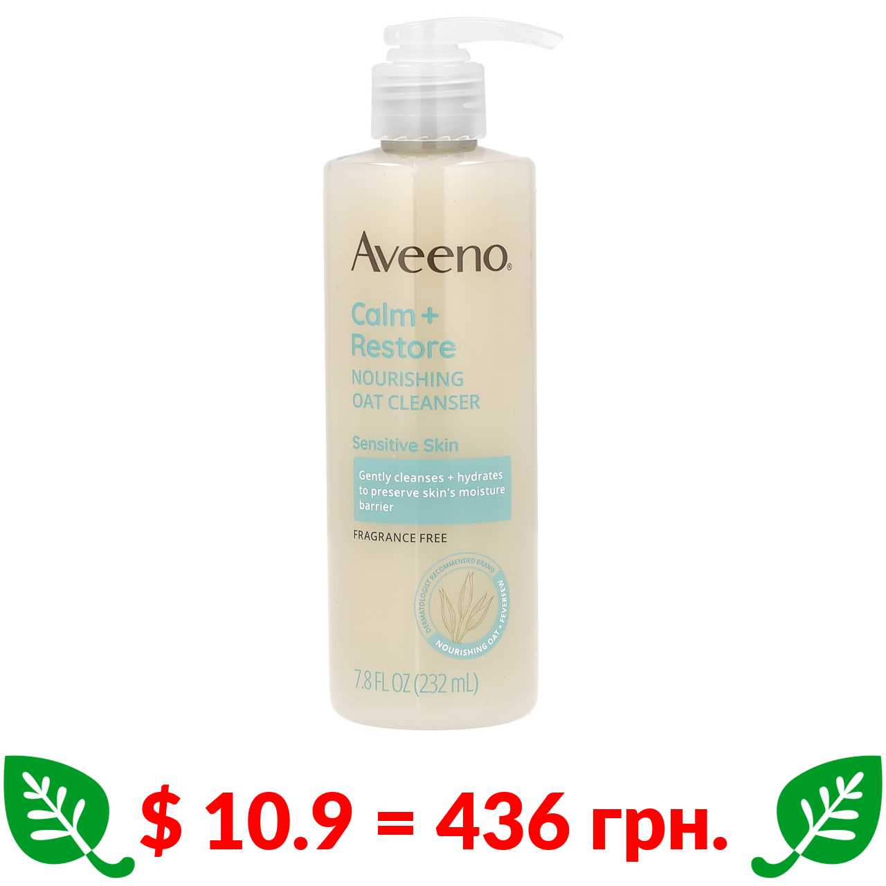 $ 10.9 = 436 грн. ????️ у кошику ????️ Aveeno, Calm + Restore, живильний засіб для вмивання з вівсом, без ароматизаторів, 232 мл (7,8 рідк. унції)