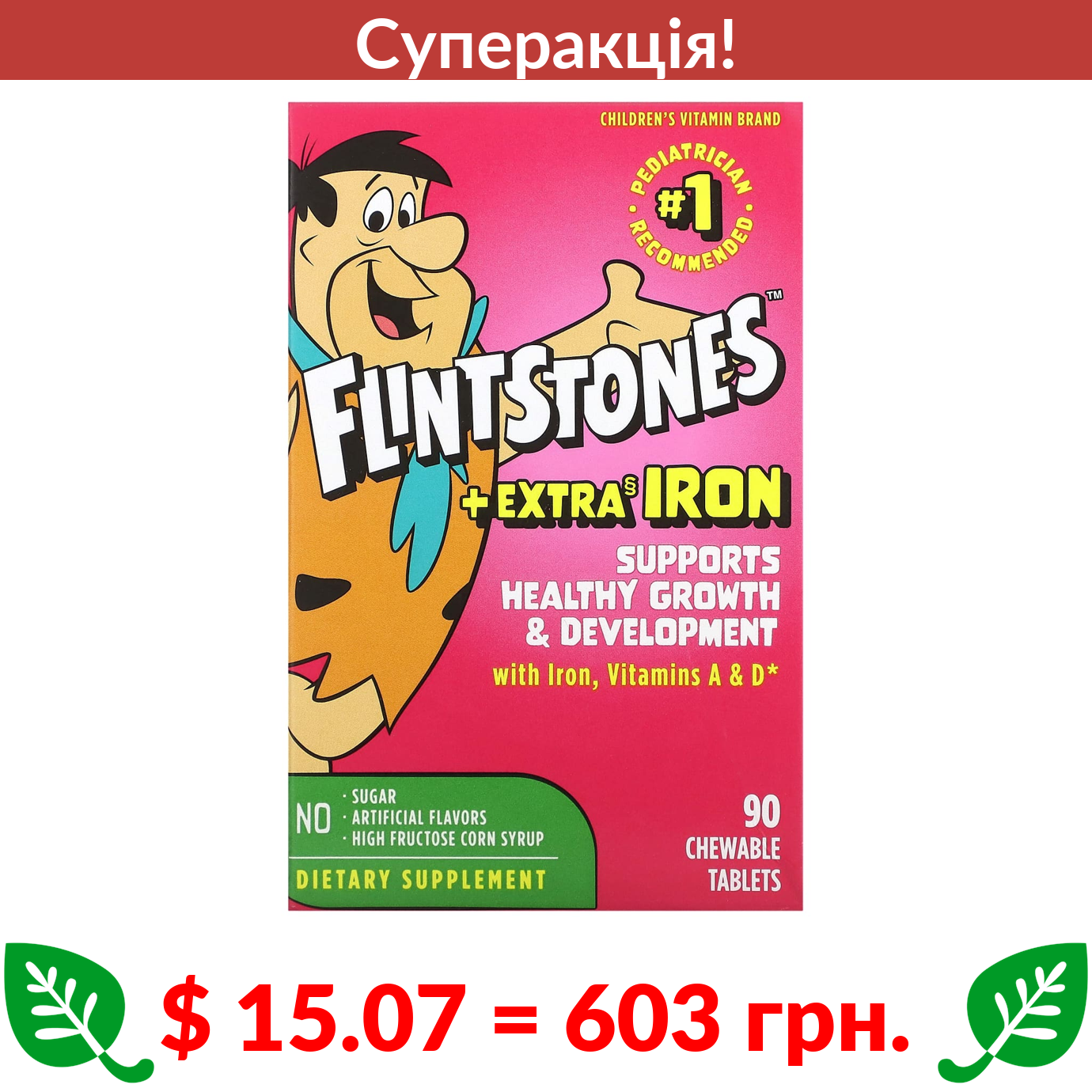 $ 15.07 = 603 грн. ???? cуперакція! ???? Flintstones, мультивітаміни для дітей із залізом, 90 жувальних таблеток