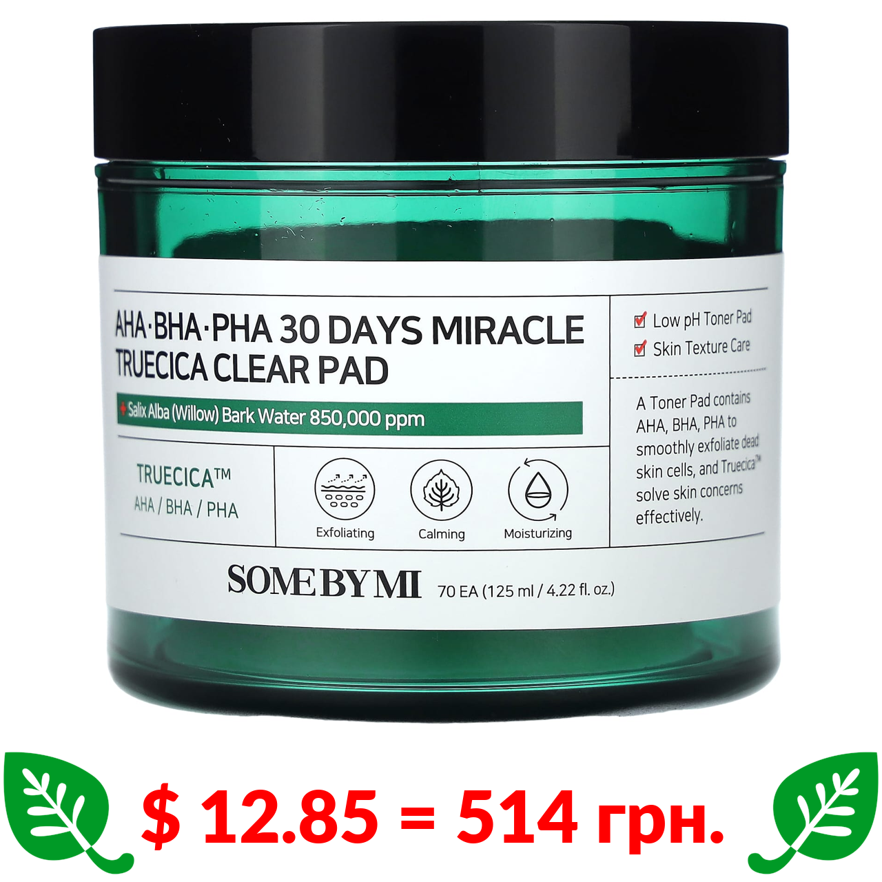 $ 12.85 = 514 грн. ????️ у кошику ????️ SOME BY MI, AHA/BHA/PHA 30 Days Miracle Truecica Clear Pad, 70 дисків, 125 мл (4,22 рідкої унції)