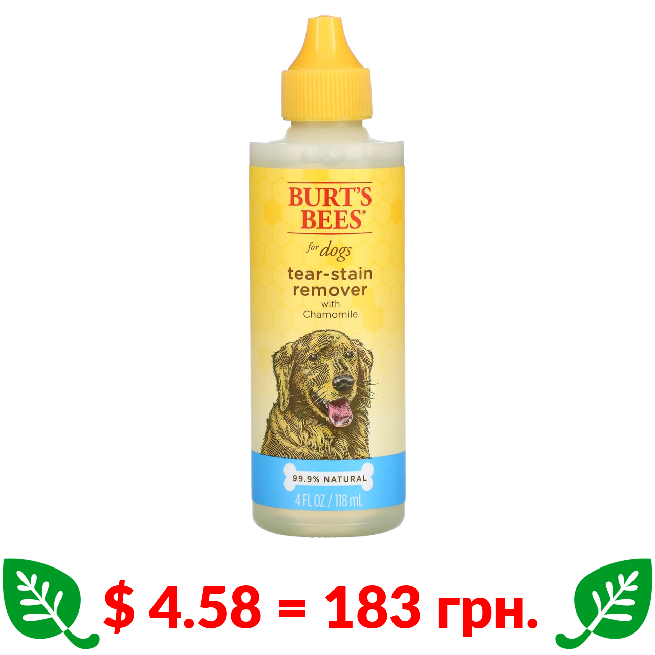 $ 4.58 = 183 грн. Burt’s Bees, засіб із ромашкою для видалення слізних плям, для собак, 120 мл (4 рідк. унції)