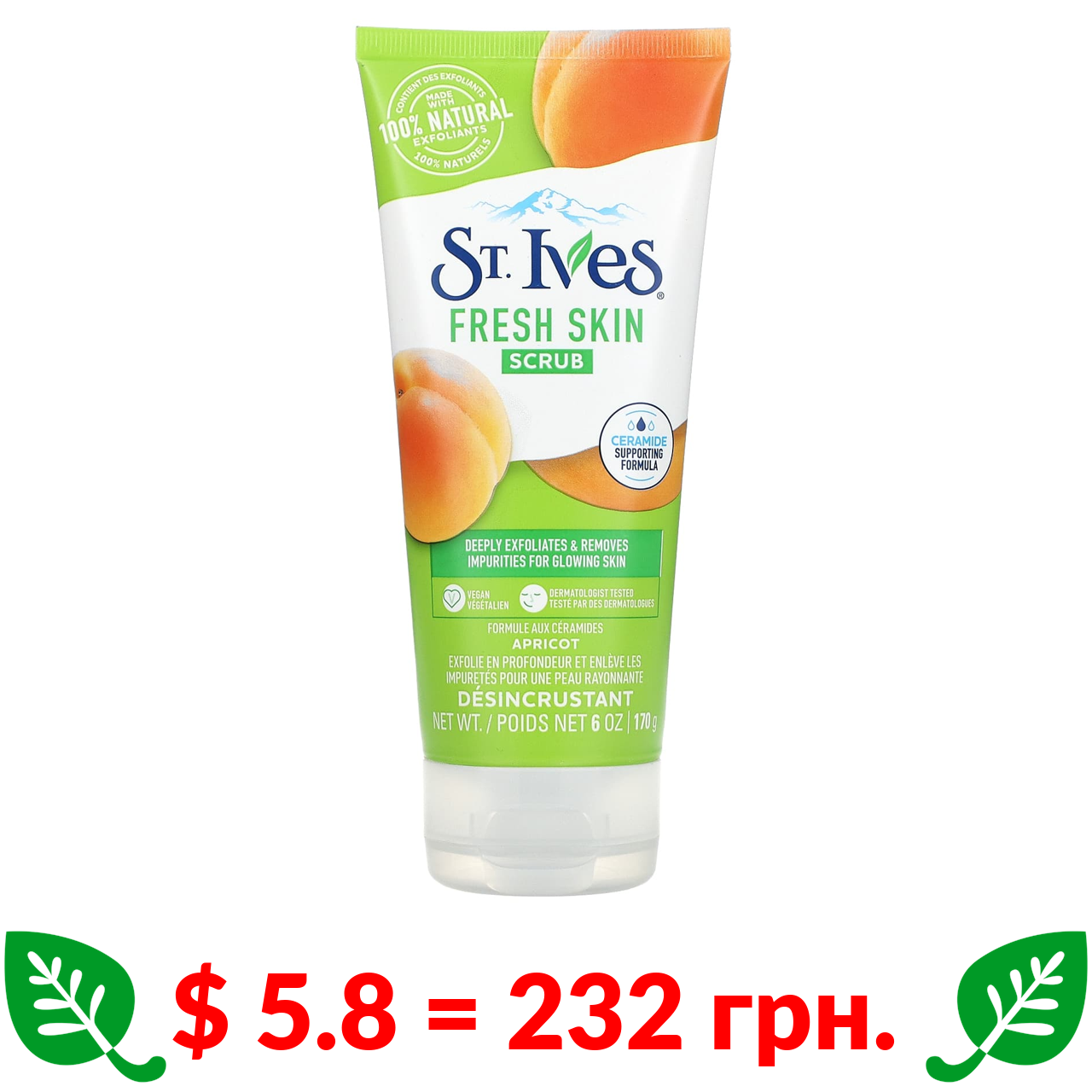 $ 5.8 = 232 грн. ????️ у кошику ????️ St. Ives, Fresh Skin, абрикосовий скраб, 170 г (6 унція)