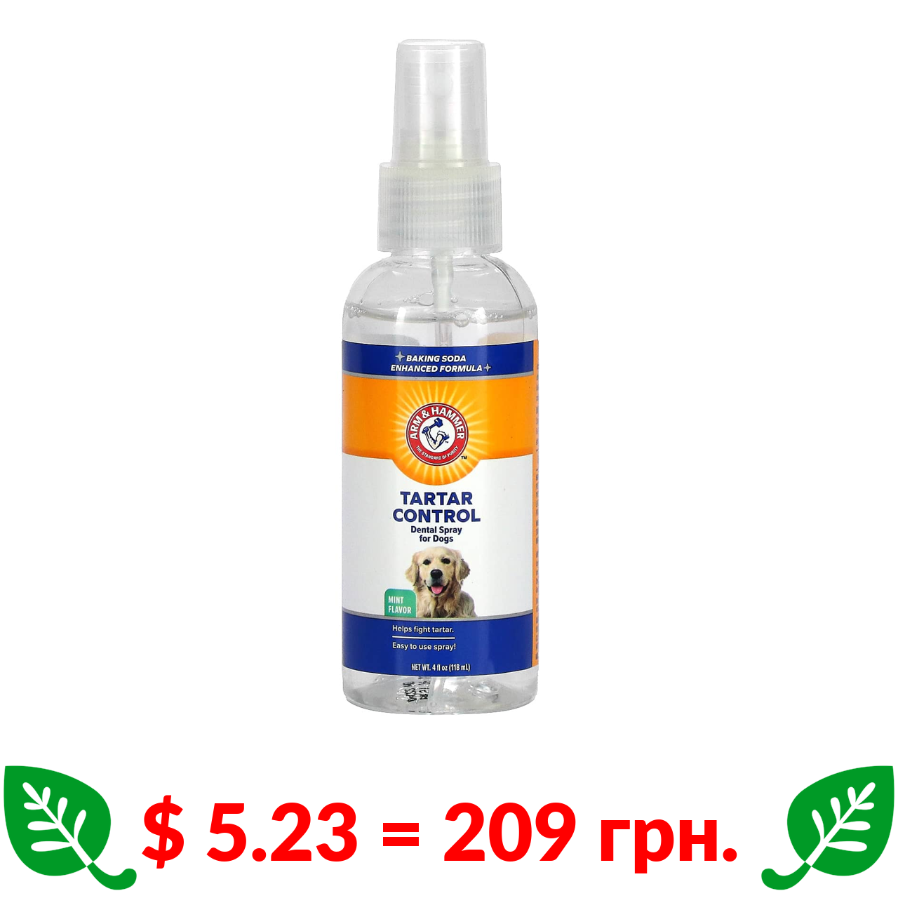$ 5.23 = 209 грн. Arm & Hammer, Tartar Control, Dental Spray For Dogs, Mint, 4 fl oz (118 ml)