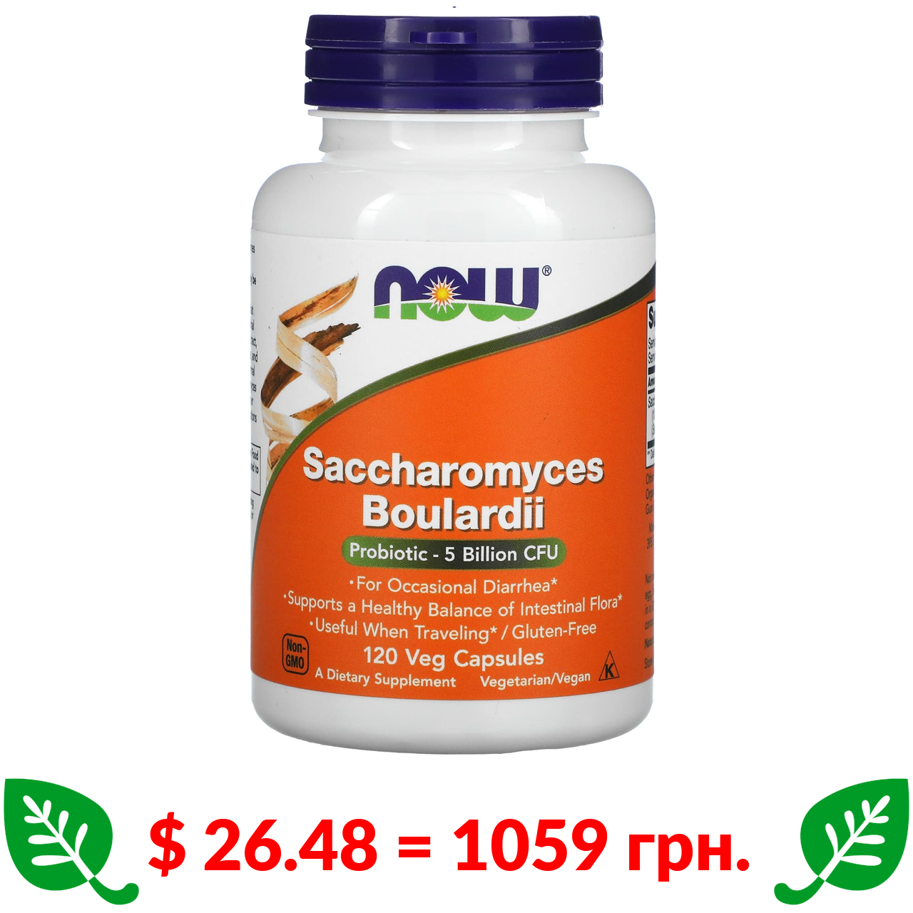 $ 26.48 = 1059 грн. Now Foods, сахароміцети буларді, 5 мільярдів КУО, 120 рослинних капсул