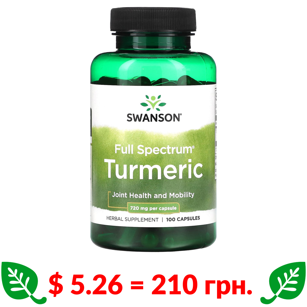 $ 5.26 = 210 грн. ????️ у кошику ????️ Swanson, Full Spectrum, куркума, 720 мг, 100 капсул