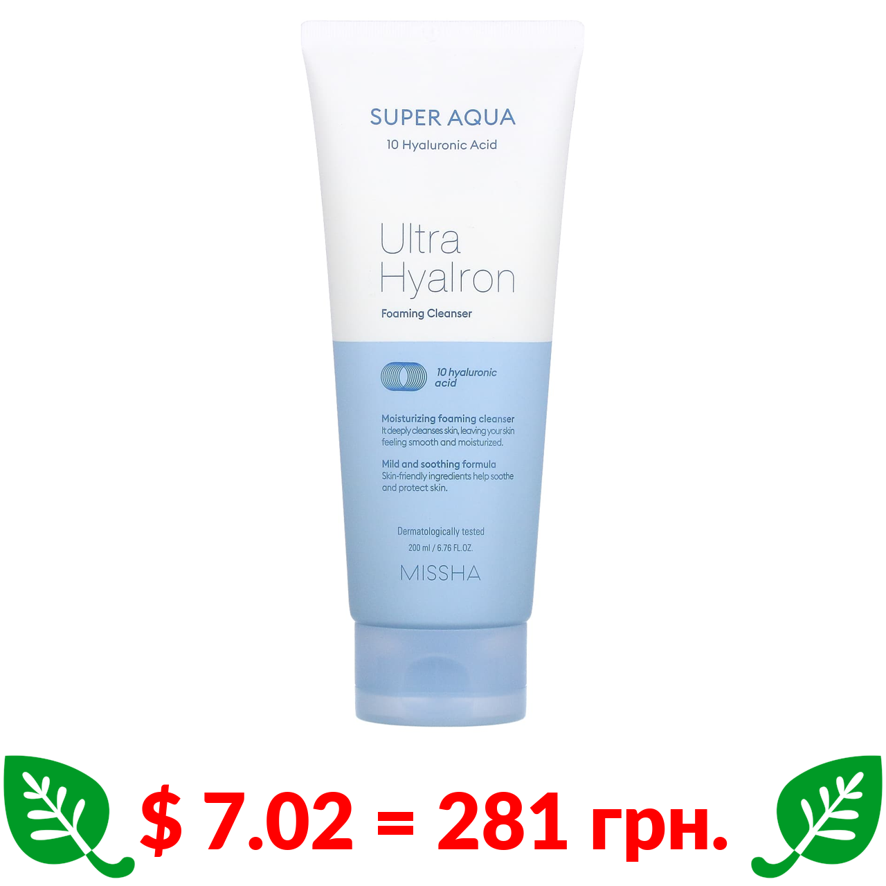 $ 7.02 = 281 грн. ????️ у кошику ????️ Missha, Super Aqua Ultra Hyalon, очищувальна пінка, 200 мл (6,76 рідк. унції)