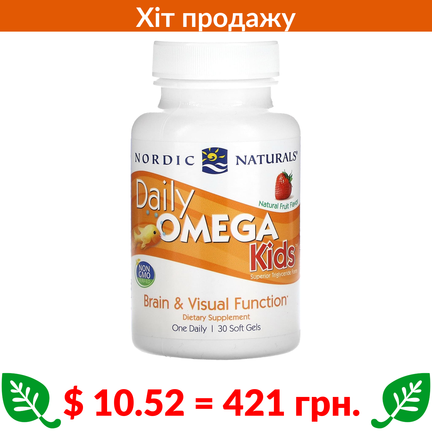 $ 10.52 = 421 грн. Nordic Naturals, омега для дітей, для щоденного вживання, зі смаком натуральних фруктів, 340 мг, 30 капсул
