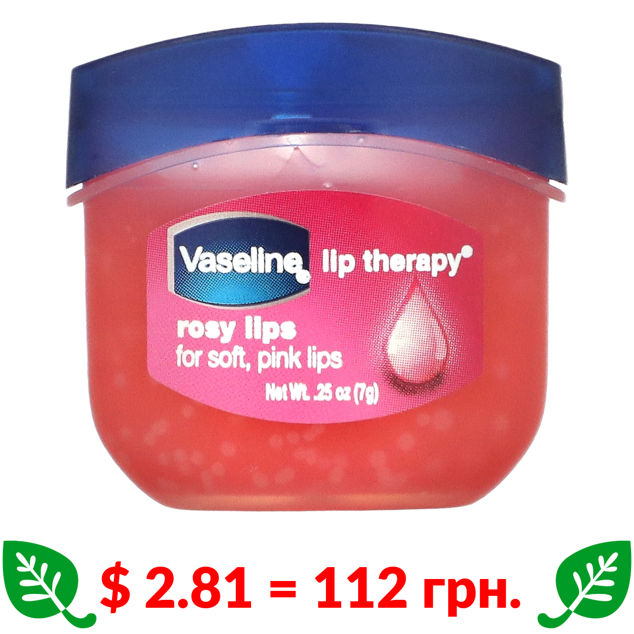 $ 2.81 = 112 грн. Vaseline, Lip Therapy, бальзам для губ, рожеві губи, 7 г (0,25 унції)