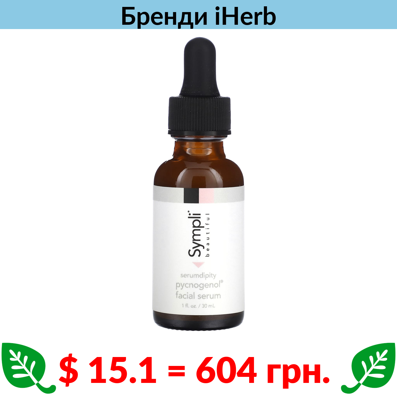 $ 15.1 = 604 грн. ????️ у кошику ????️ Sympli Beautiful, Serumdipity, сироватка для обличчя з Pycnogenol, 30 мл (1 рідк. унція)