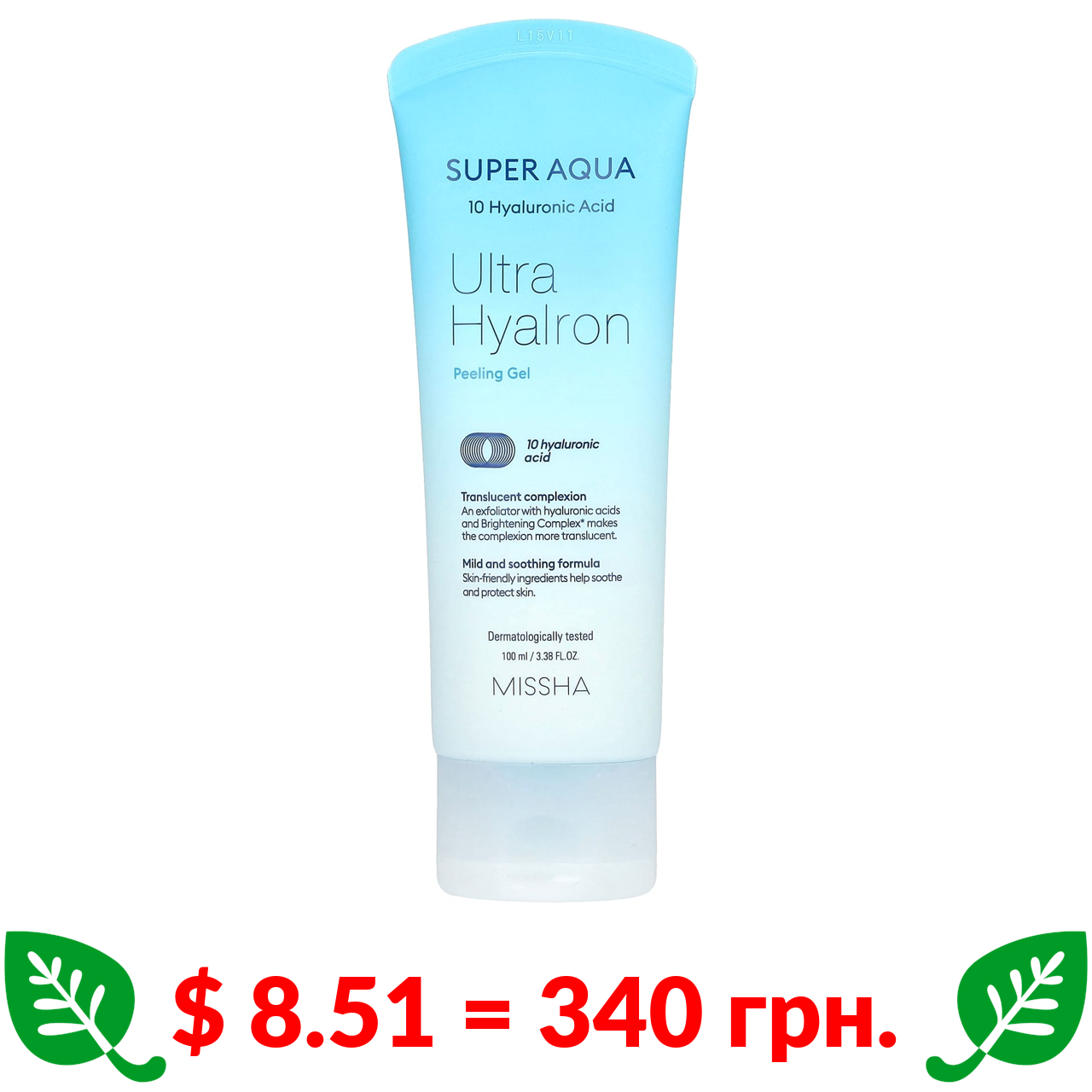 $ 8.51 = 340 грн. Missha, Super Aqua, Ultra Hyalron, гель-пілінг з гіалуроновою кислотою, 100 мл (3,38 рідк. унції)