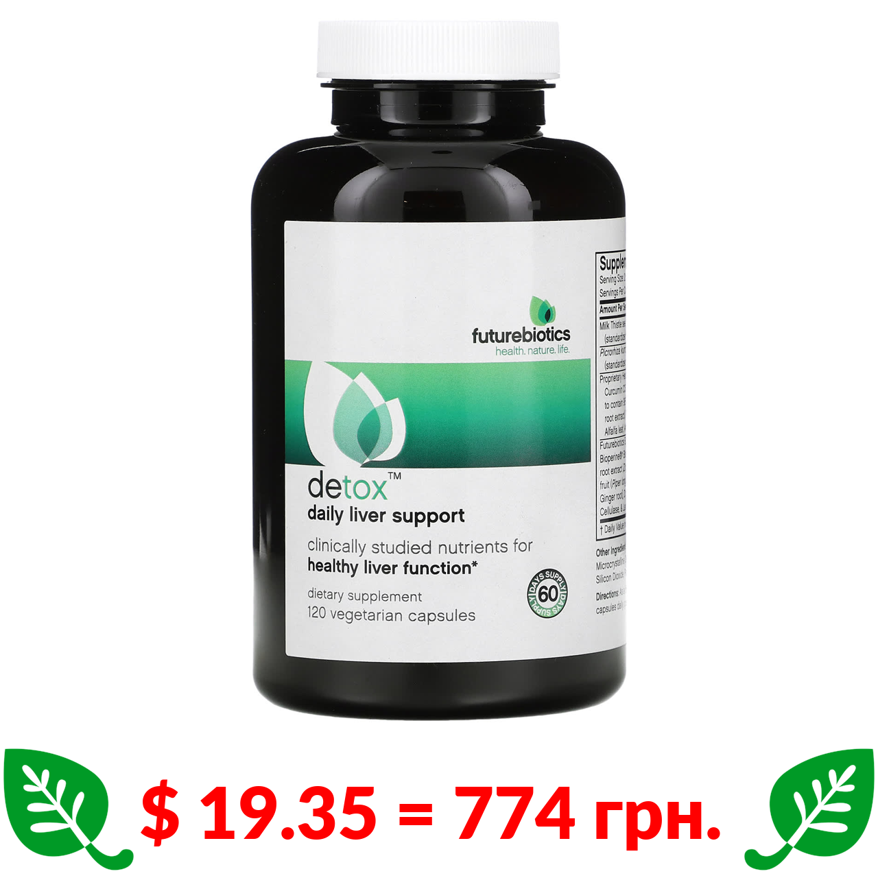 $ 19.35 = 774 грн. Futurebiotics, Detox, щоденна підтримка печінки, 120 вегетаріанських капсул