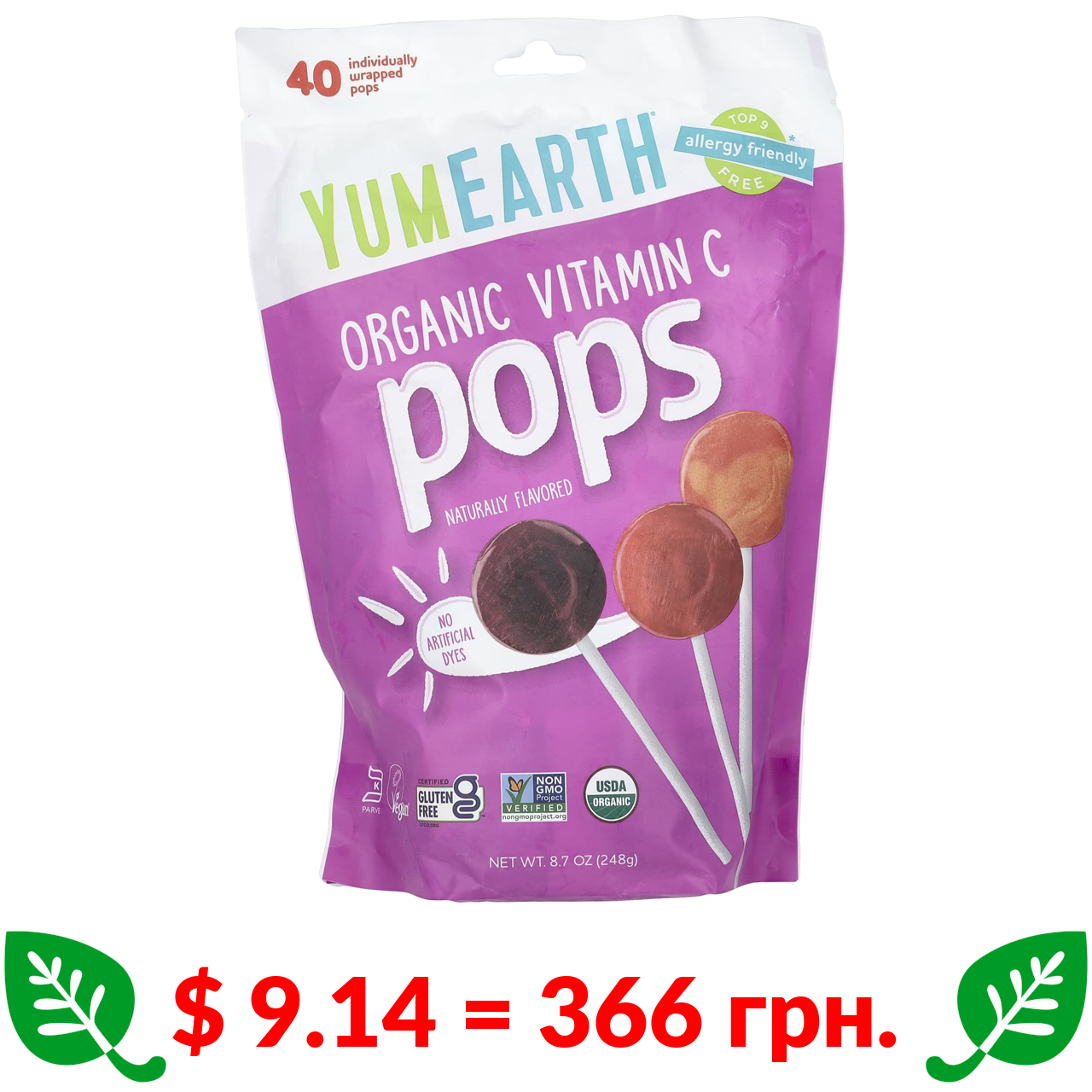 $ 9.14 = 366 грн. ????️ у кошику ????️ YumEarth, органічні попси з вітаміном С, асорті, 40 упаковок в індивідуальній упаковці, 248 г (8,7 унції)